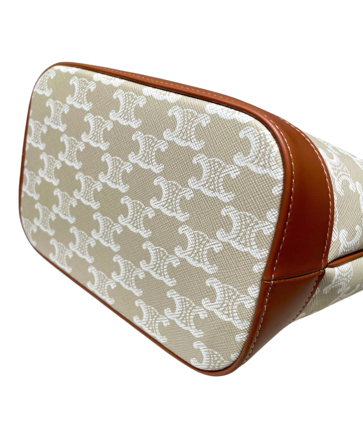 スタッフコメント CELINEのアイコニックな「トリオンフ」モチーフを全面にあしらったスモールバケットバッグでございます。ナチュラルなキャンバス地にブラウンレザーを組み合わせた上品なデザインで、デイリーユースからお出かけまで幅広く活躍します。ショルダーストラップは調整可能で、肩掛けや斜め掛けなどスタイルに合わせて使用可能です。