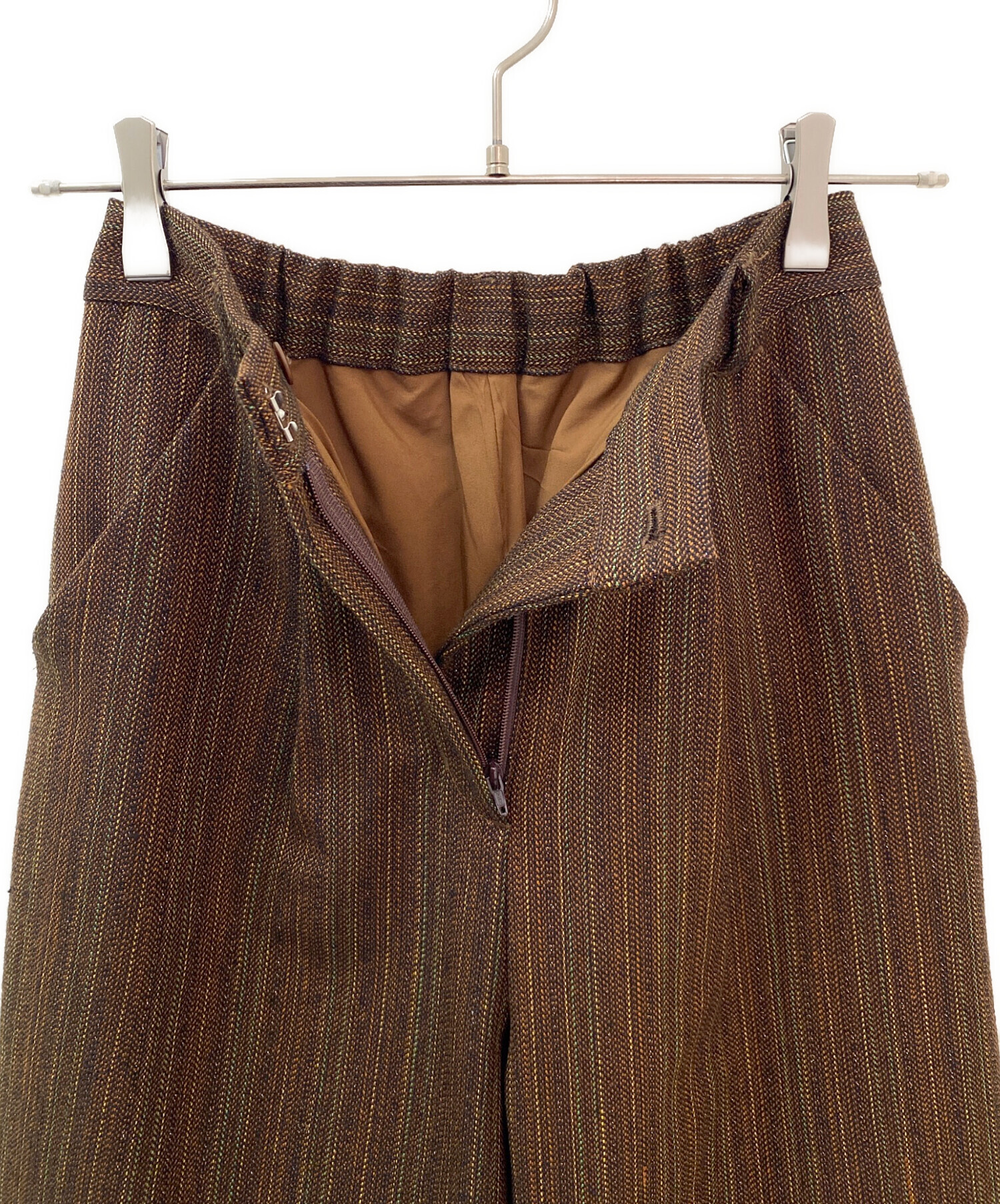 | スタッフコメント | AMERIのUND MANY MOTIF BUTTON PANTSでございます。背面のポケットデザインに施された様々なモチーフの特徴的なボタンと、ラメ混じりのストライプ模様がユニークな印象を与えます。存在感を放つディテールを持ちながら、落ち着きあるブラウンカラーとスタイリッシュなフォルムで、日常への馴染みやすさも兼ね備える、特別な一着です。 |