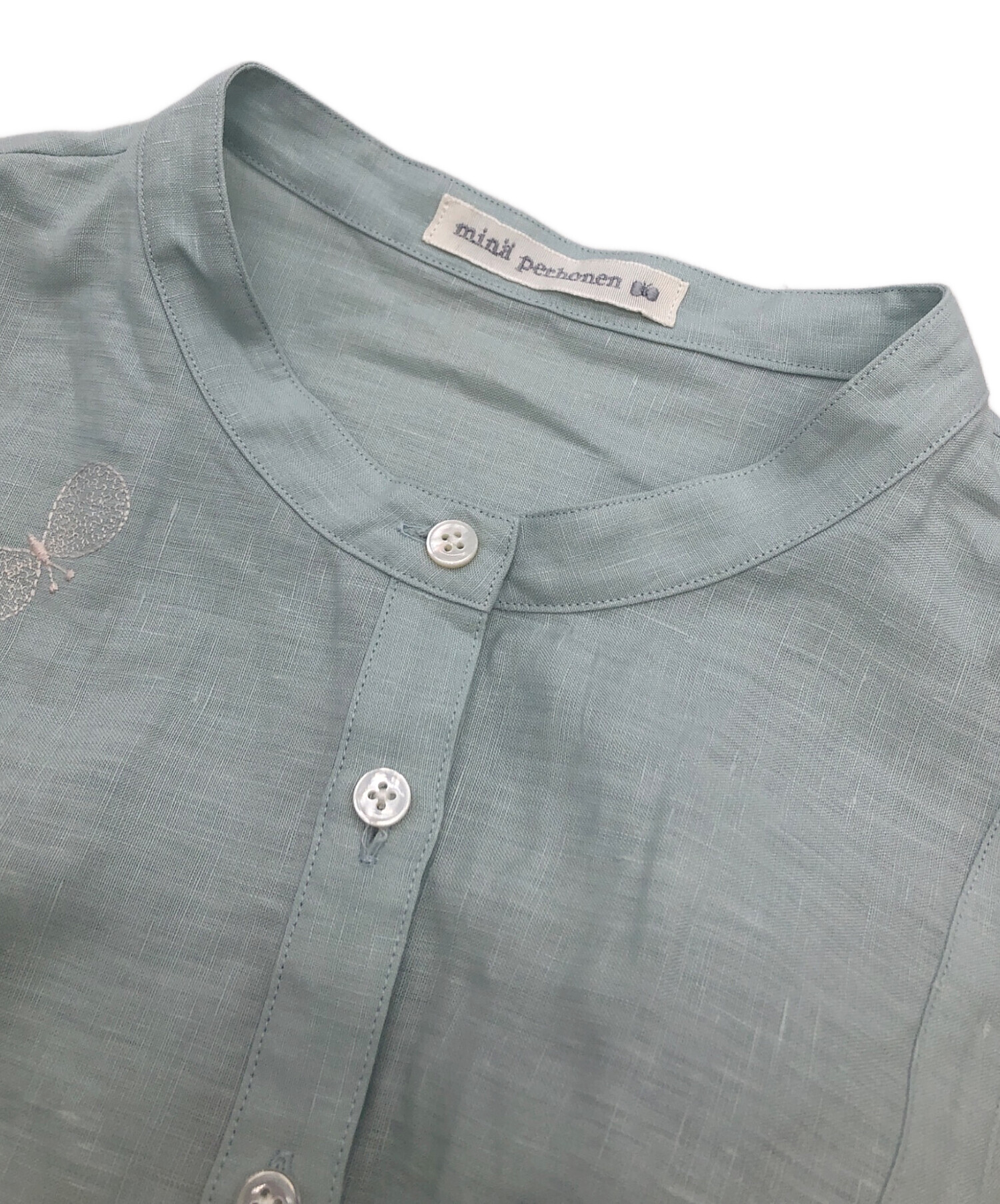 | 素材 | リネン 100% 刺繍部分 上糸 綿 100% 下糸 ポリエステル100% choucho部分 上糸 キュプラ 100% 下糸 ポリエステル100% |