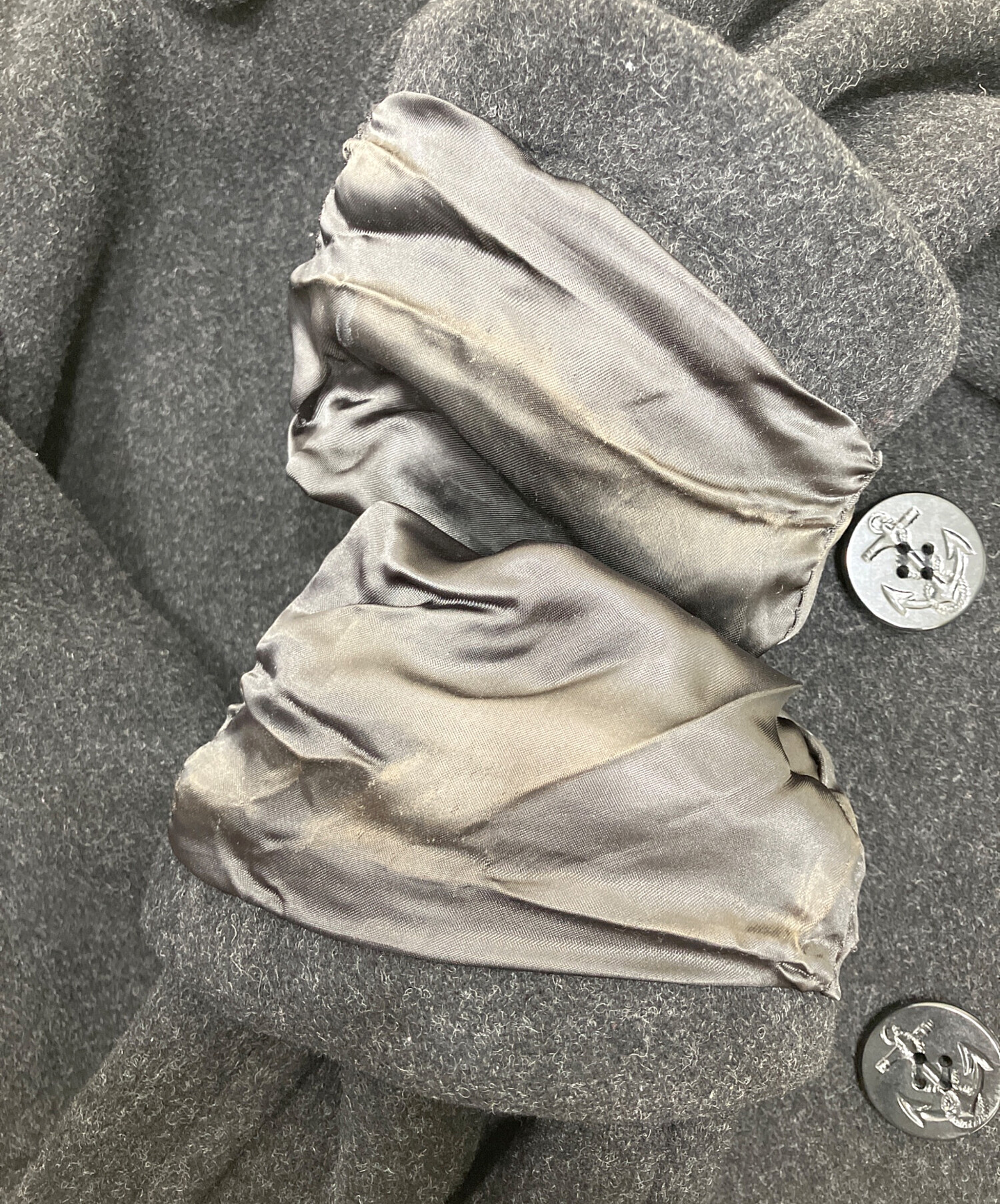 • COMME des GARCONS HOMME(コムデギャルソン オム)COMME des GARCONS HOMME (コムデギャルソン オム) Pコート メルトンコート チャコールグレー サイズ:Sの古着・服飾アイテム 袖口裏地ヨゴレ有