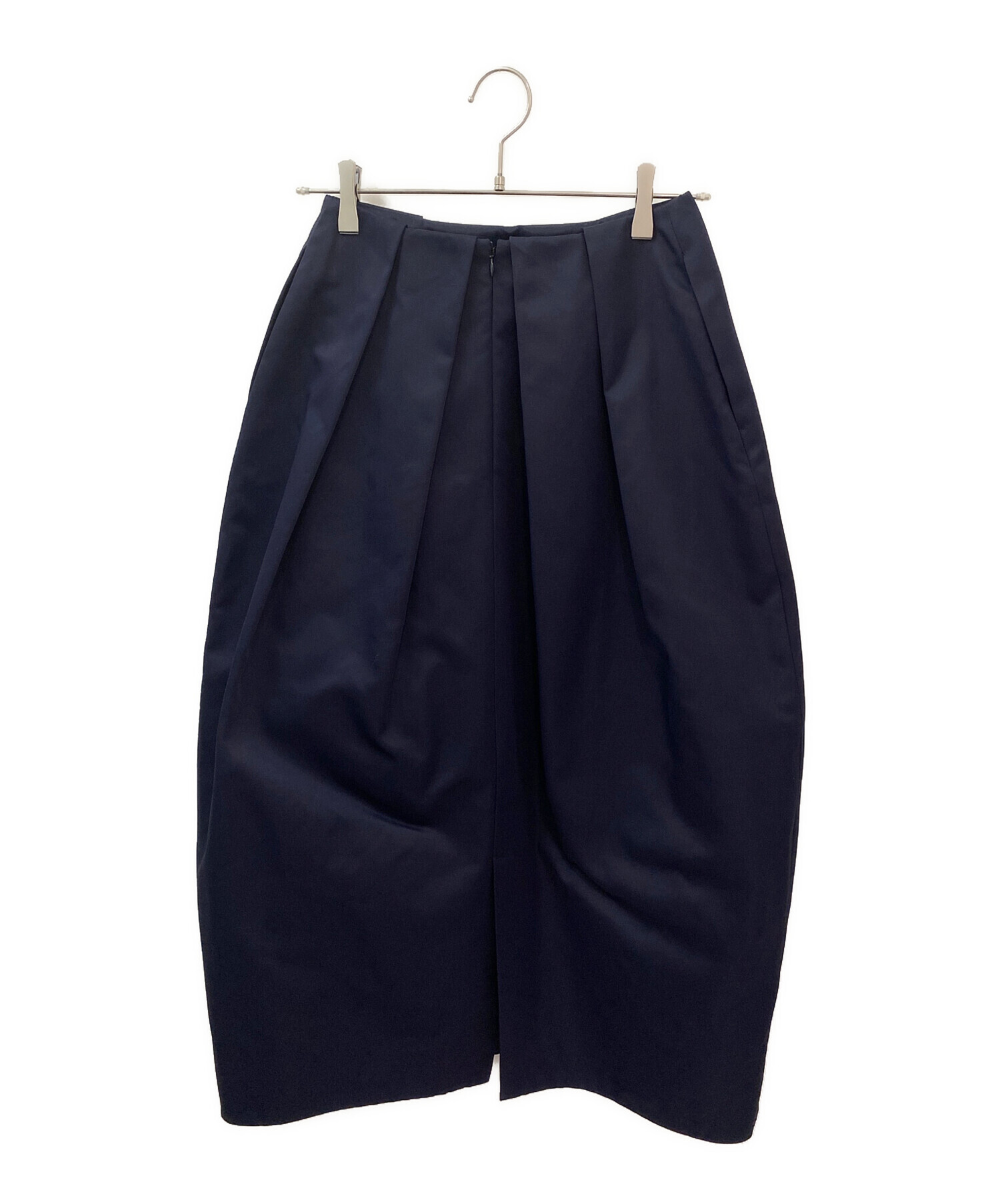 | スタッフコメント | ボリュームのあるシルエットにタックが大きく加えられ、立体感のあるデザインになっております。裾はふんわりと窄まり、バックにスリットが入ることによって動きやすさもプラスされます。オケージョンにも使っていただける上品な質感でございます。 |
