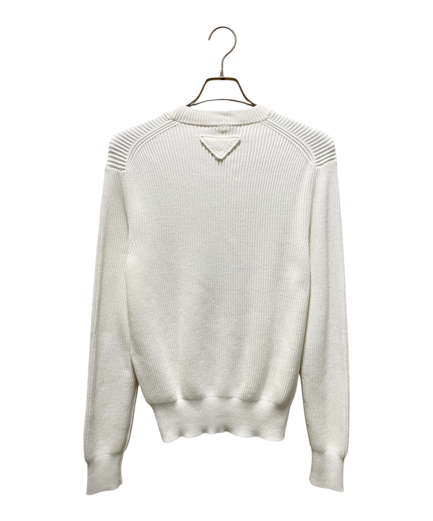 | スタッフコメント | 爽やかなホワイトカラーが眼を惹く「コットンクルーネックセーター」でございます。上質コットンが使用されているので肌触りが良く、着心地は最高です。クルーネックで長袖というシンプルなデザインなので、インナーとしても使いやすく、カジュアルにもきれいめにも活用できます。また、背面にデザインされた独特のトライアングルロゴ型ディティールが控えめにブランドを表現しています。 |