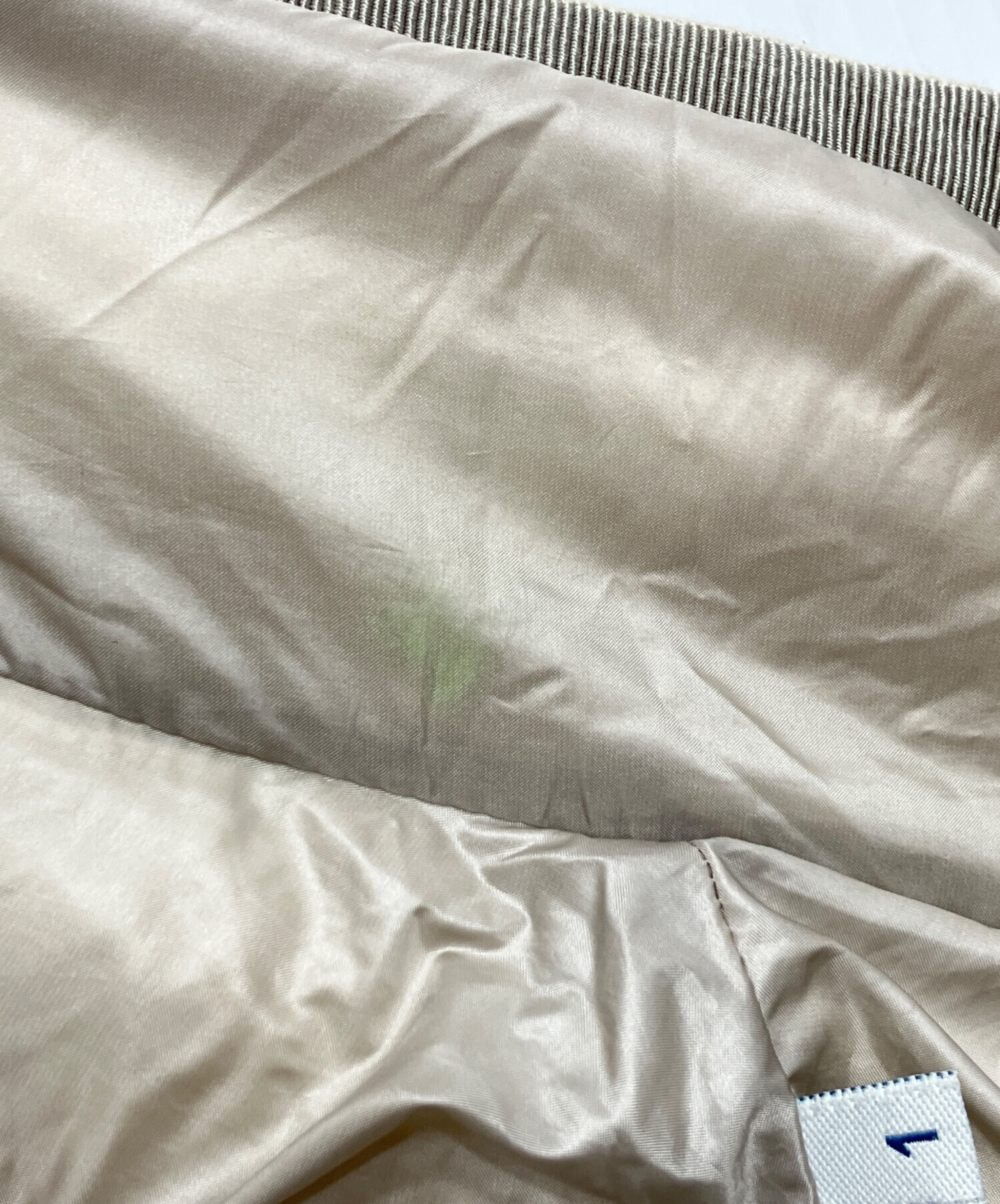 目立つシミや汚れ、におい等がある場合は商品画像や説明文にて極力表記させていただいておりますが、中古品という商品の特性上、全ての瑕疵や不備、洋服直し箇所を撮影・記載をすることは難しくなっております。また、ほとんどのアイテムは店頭と併売しておりますため、出品掲載時からコンディションが変動している場合もございます。あらかじめご了承くださいませ。