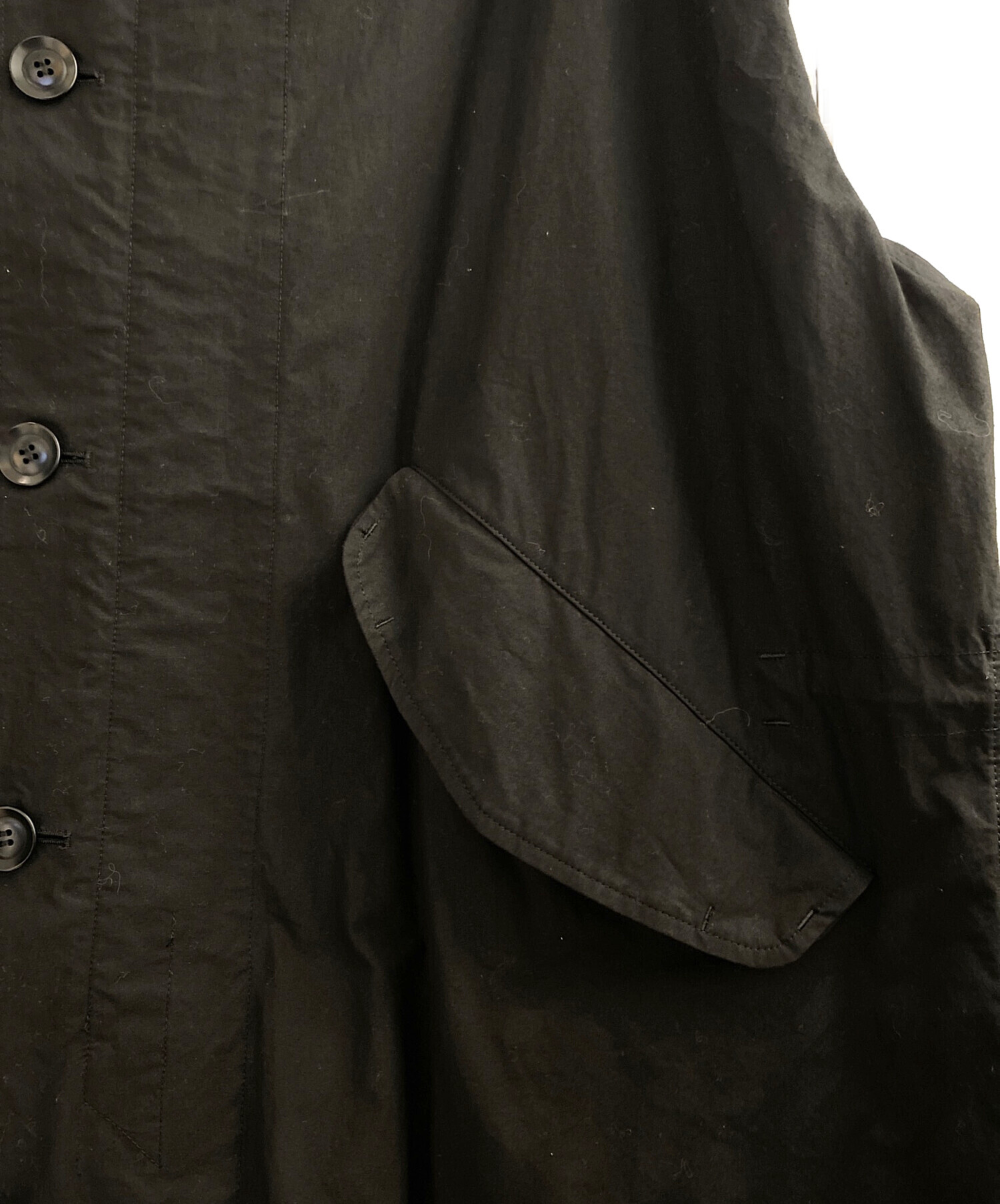 | スタッフコメント | ミリタリーアイテムをベースに、シルエットやディテールにモードなエッセンスを加えたモッズコートでございます。オールブラックのカラーリングは、シンプルでありながらも存在感があり、コーディネートの幅を広げてくれます。コットンシュート素材は、しっかりとしたコットンの質感と独特の風合いが魅力で、長く愛用できるアイテムです。 |