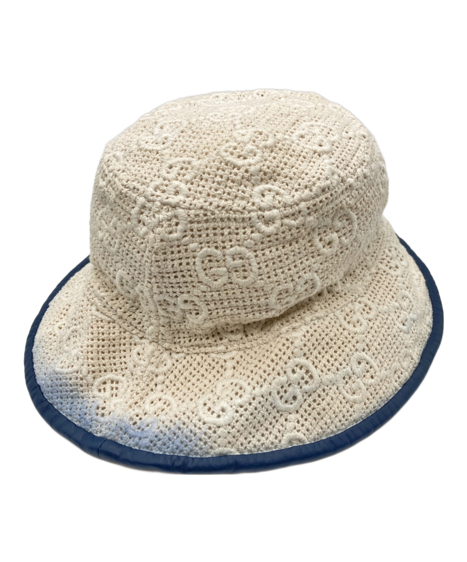 Leather-trimmed crochet bucket / レザートリムド クロシェ バケット