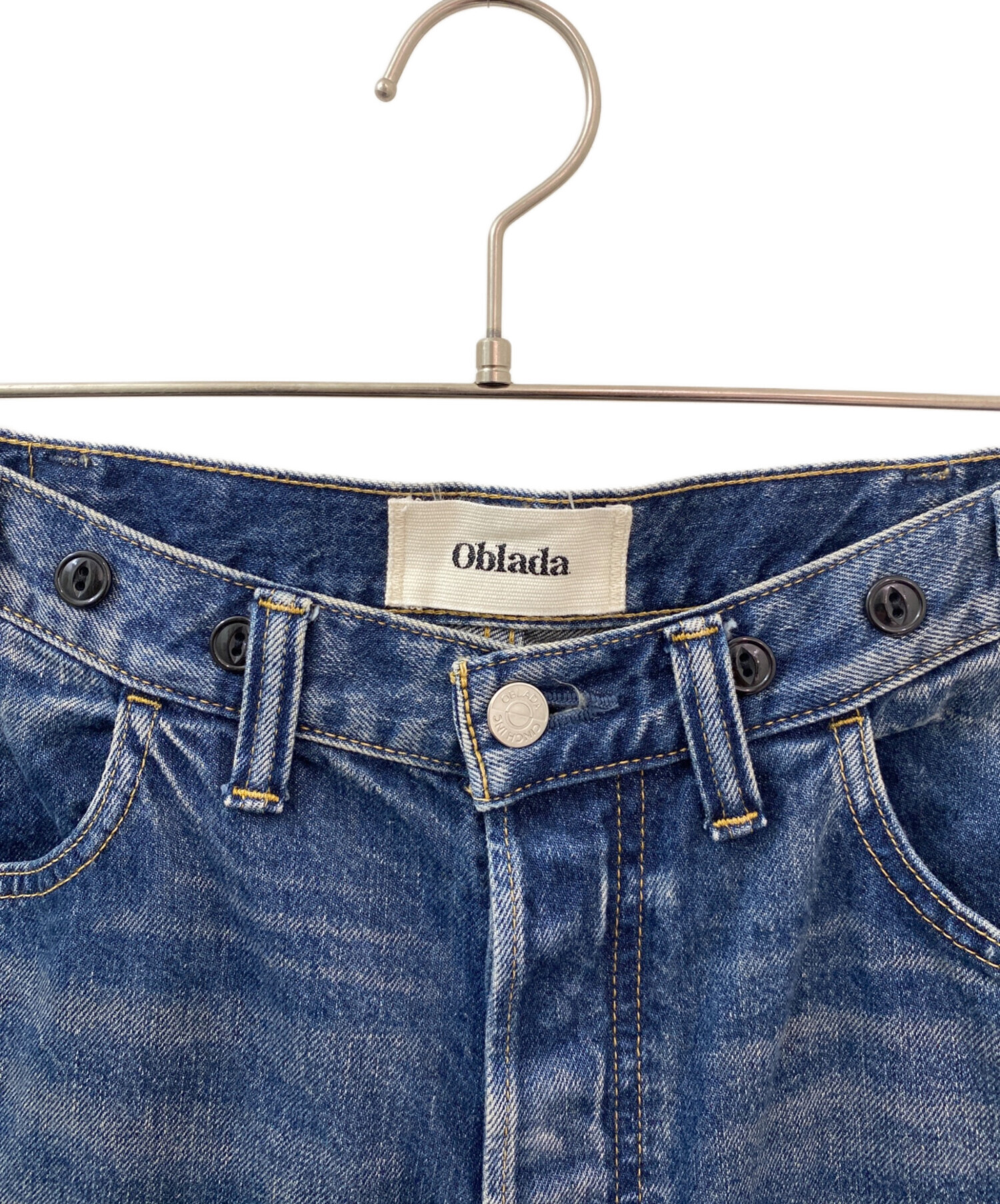 スタッフコメント 「oblada/オブラダ」のデニムパンツでございます。“伝統的なデザインをモダンに作り上げ日常に馴染ませる”というコンセプトのオブラダの魅力が詰まった、シンプルで履きやすいパンツです。ウエスト部分のボタンやバッグのパッチ、ウォッシュ加工など、こだわられたディテールが存在感を放ちます。
