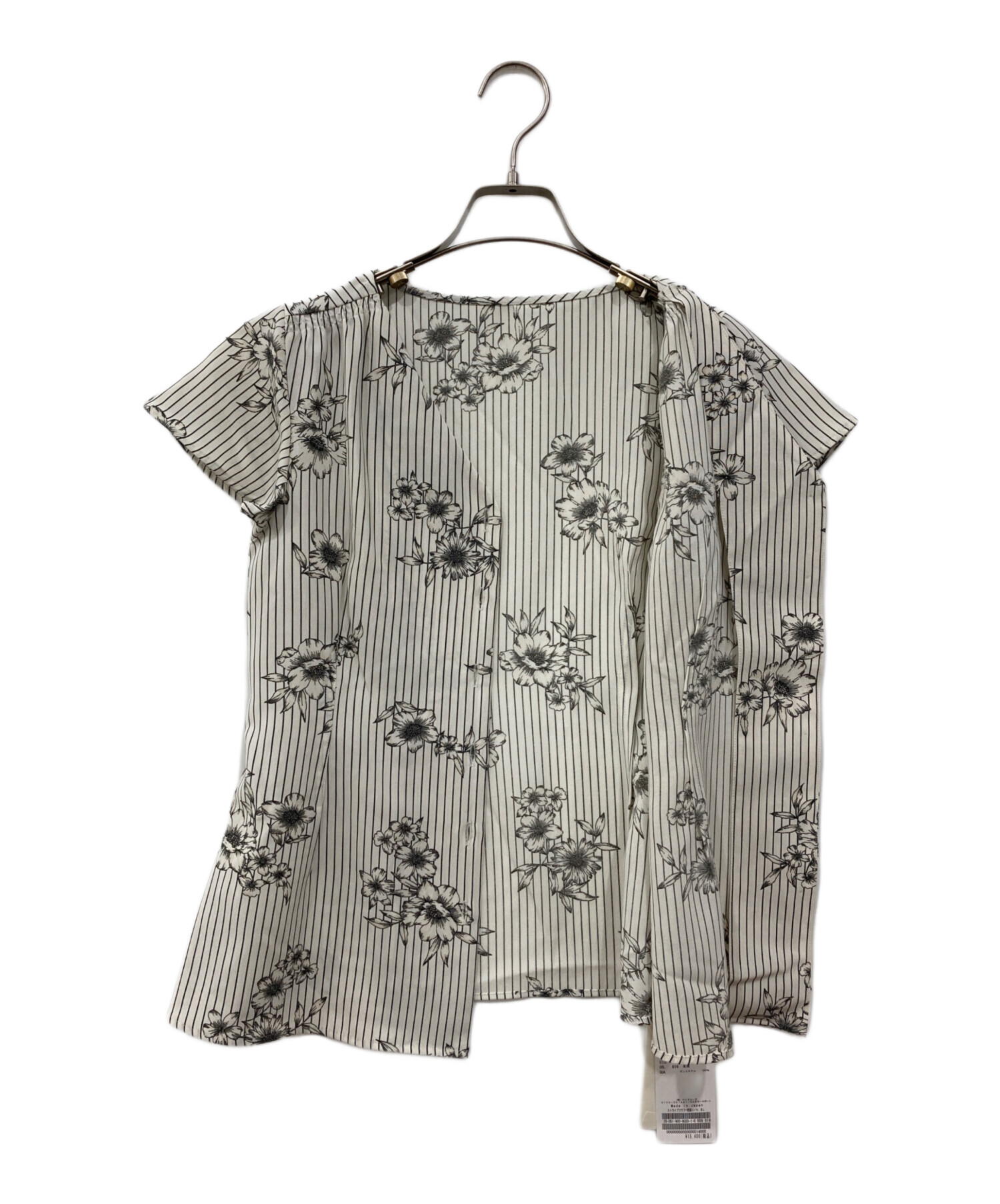 | アイテム名 | ストライプフラワー前ボタンVネックブラウス |
