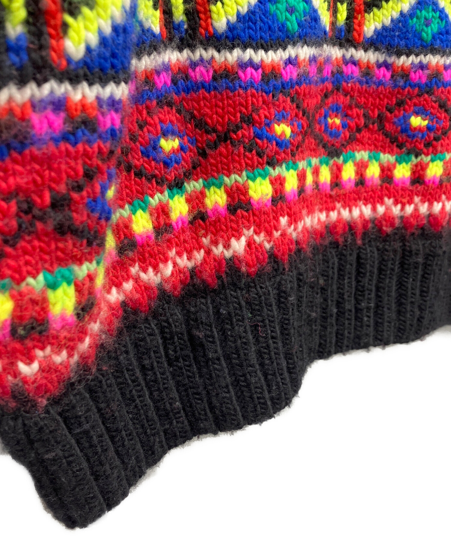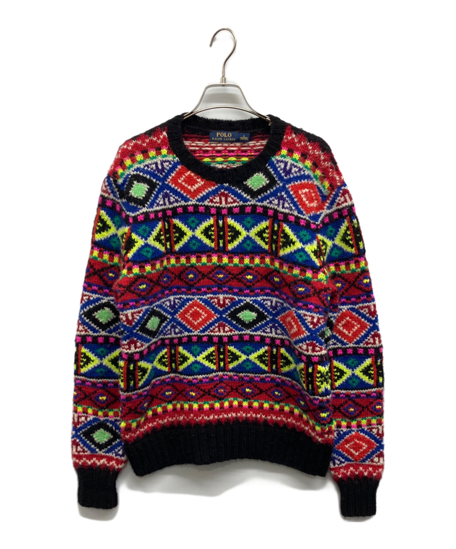 • POLO RALPH LAUREN(ポロ・ラルフローレン)POLO RALPH LAUREN (ポロ・ラルフローレン) ネイティブ柄ニット ブルー×レッド サイズ:Sの古着・服飾アイテム 毛羽立ち有