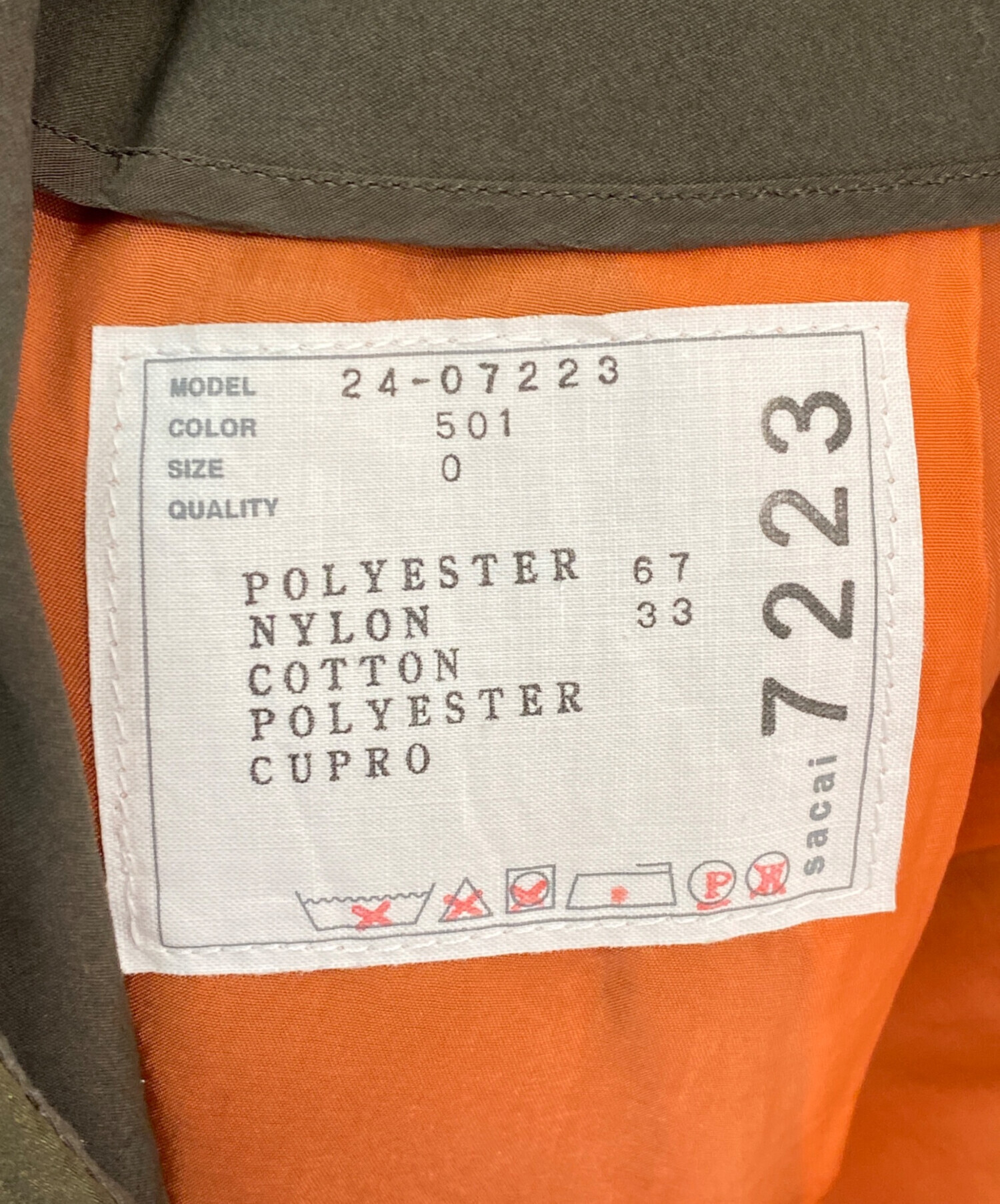 | 素材 | 表地:ポリエステル67% ナイロン33% 別布①:コットン100% 別布②:ポリエステル100% 裏地:キュプラ100% |