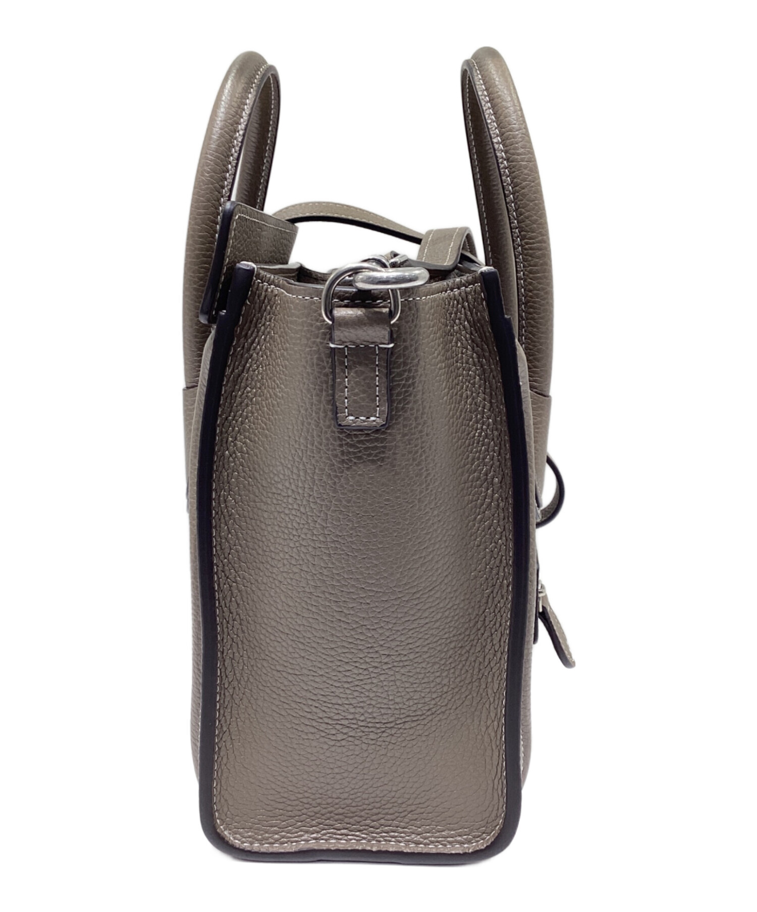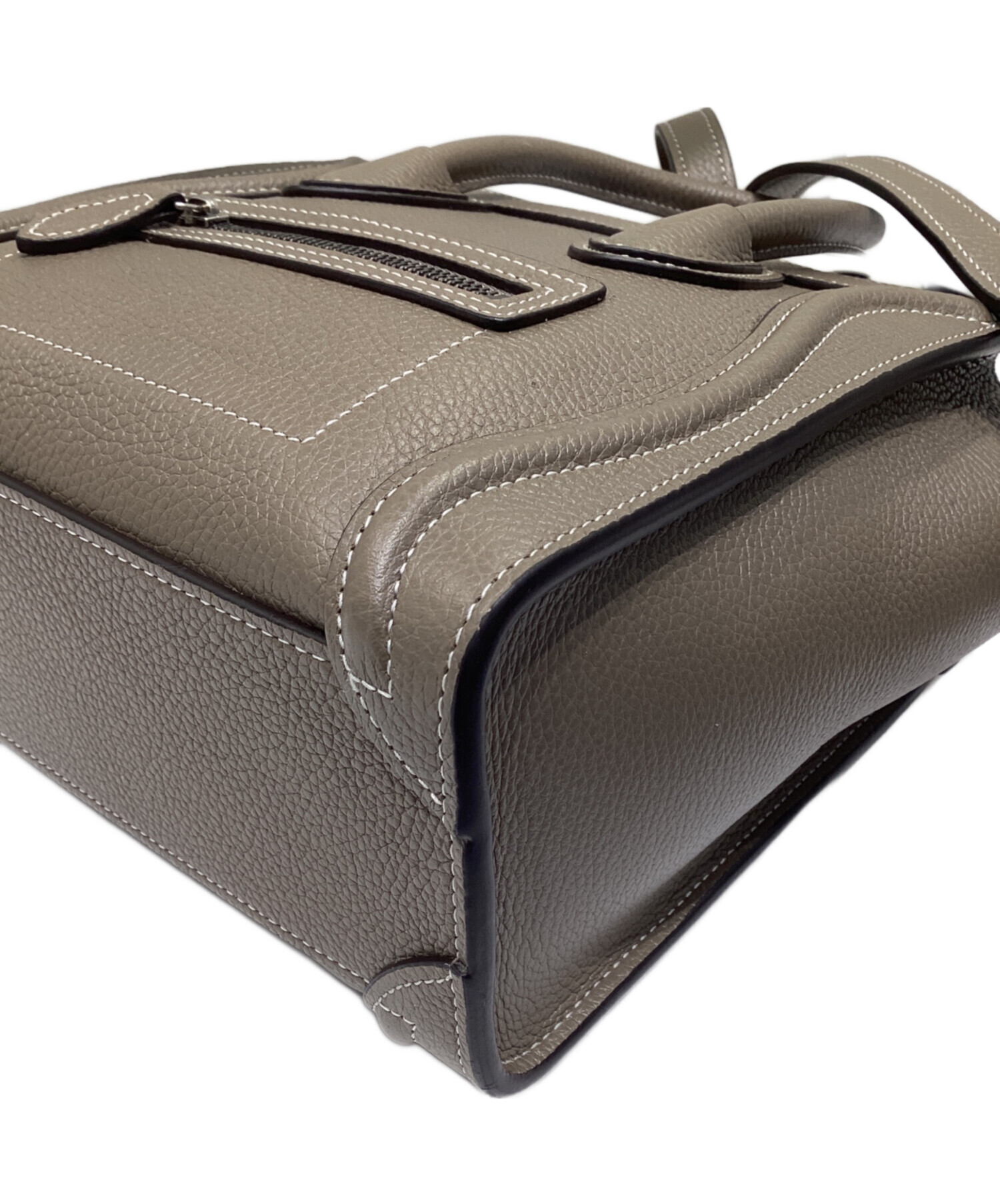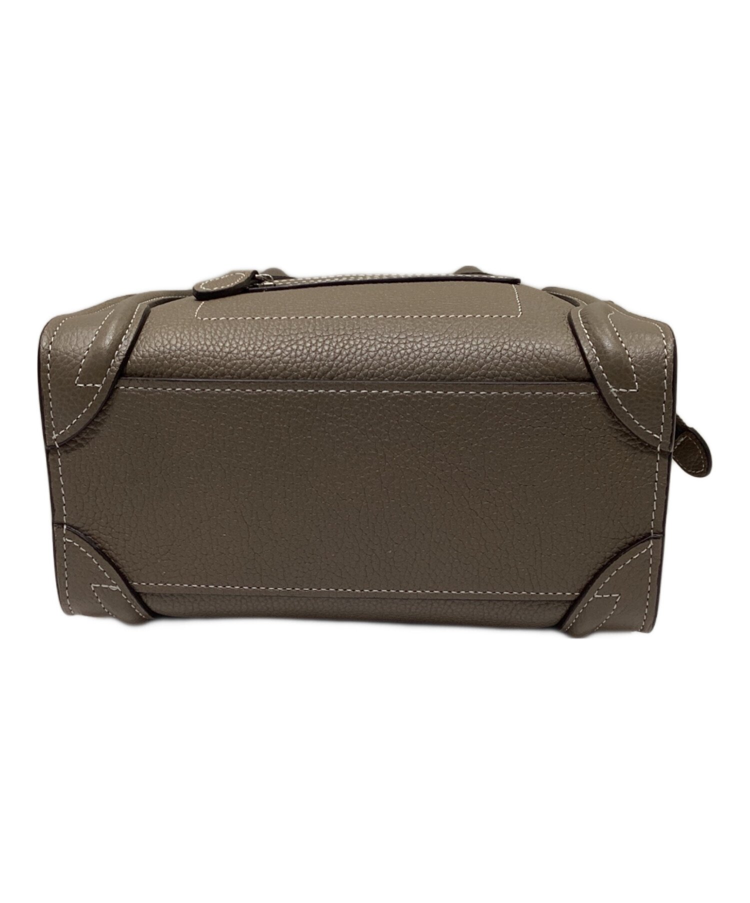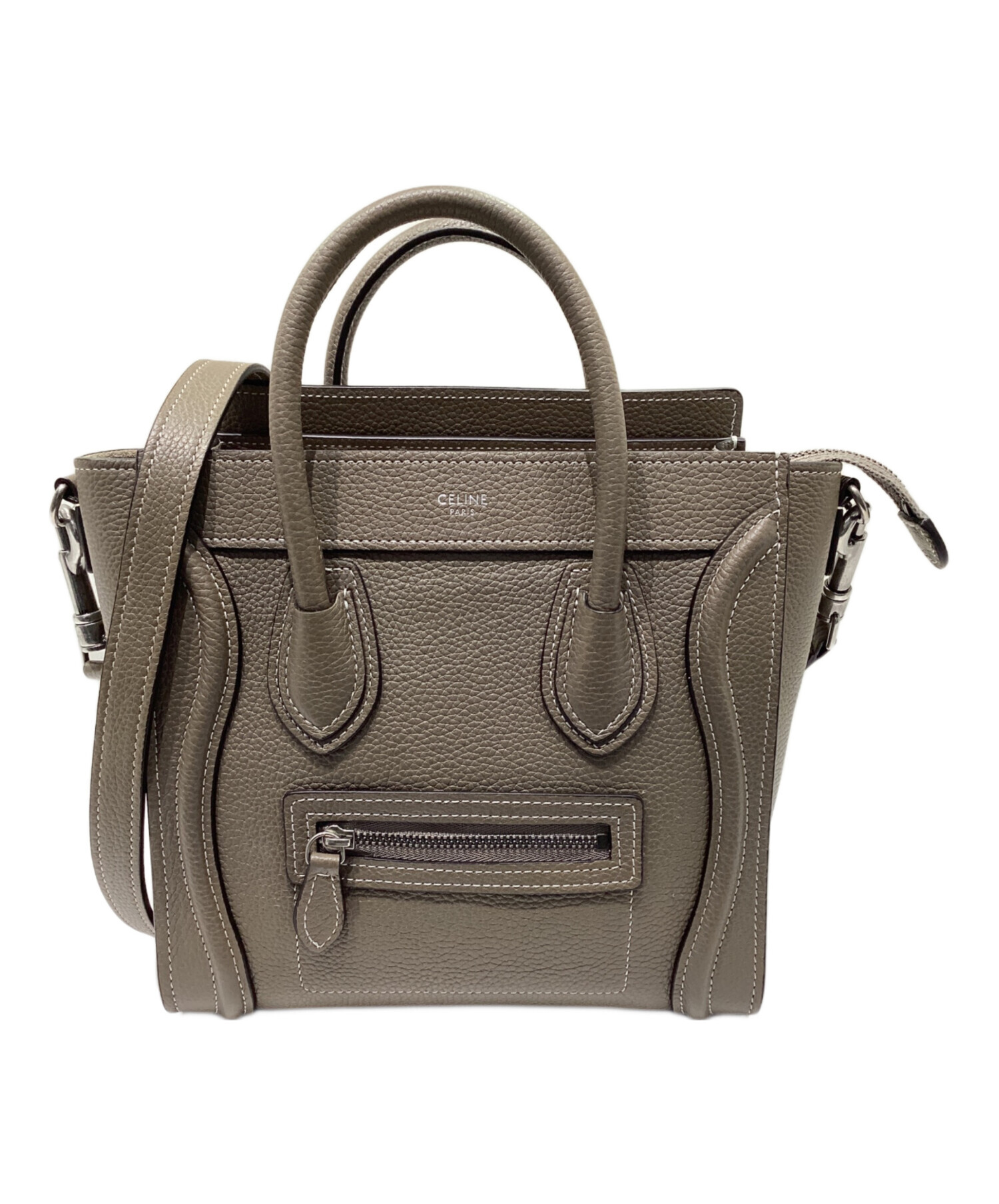 スタッフコメント CELINEの代表的なバッグの一つであるラゲージバッグです。コンパクトなナノのサイズ感で内部、外部に1箇所ずつ収納があり、必需品の持ち運びに適したサイズです。カラーは落ち着きのあるグレージュでカジュアルやきれいめのスタイルなど様々な場面でご使用いただけます。