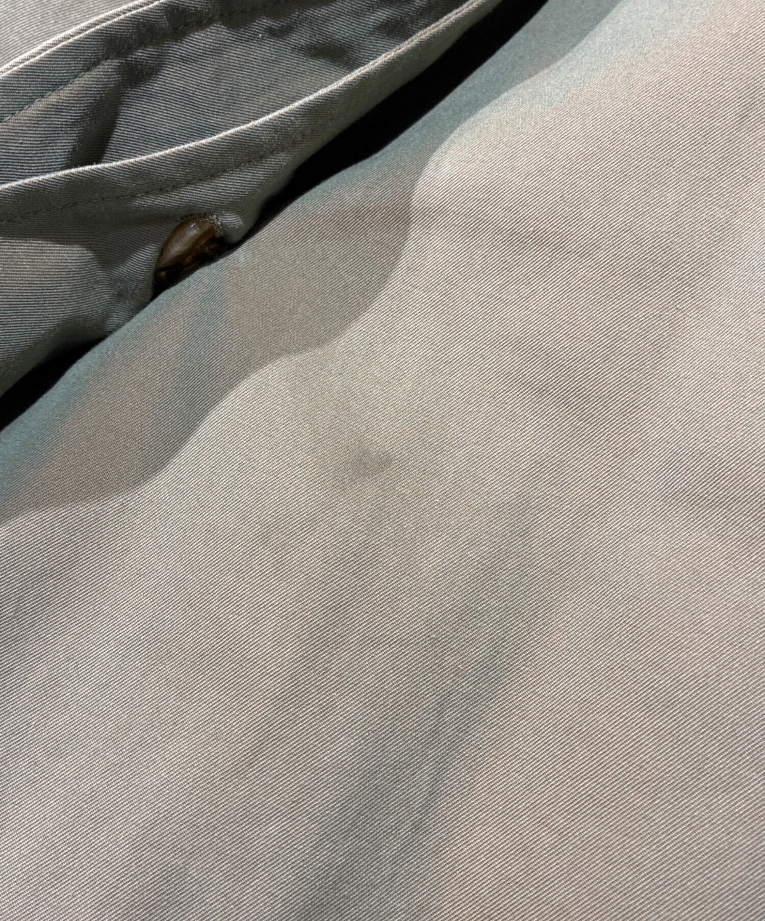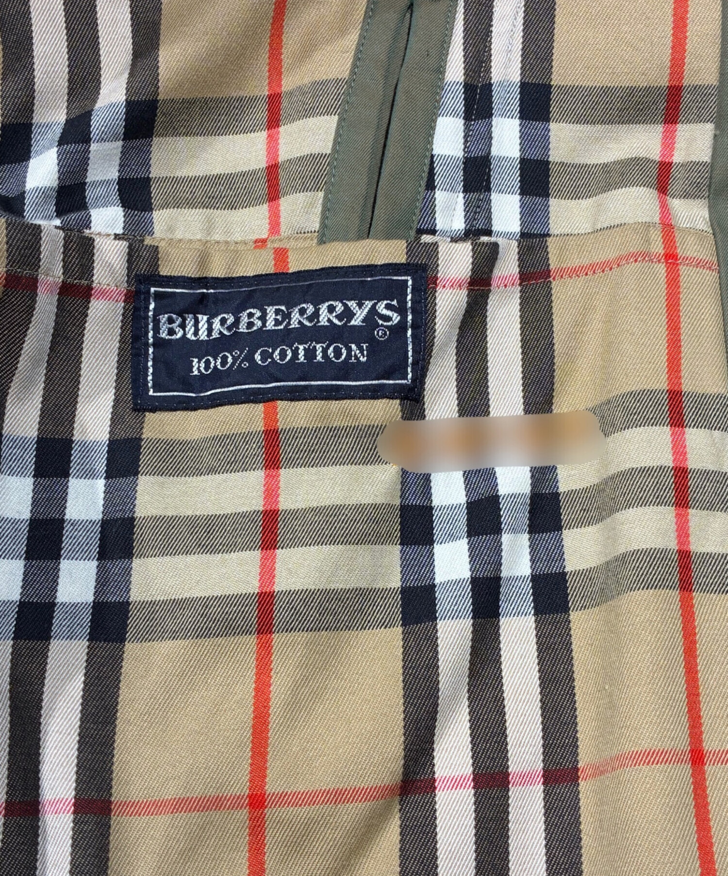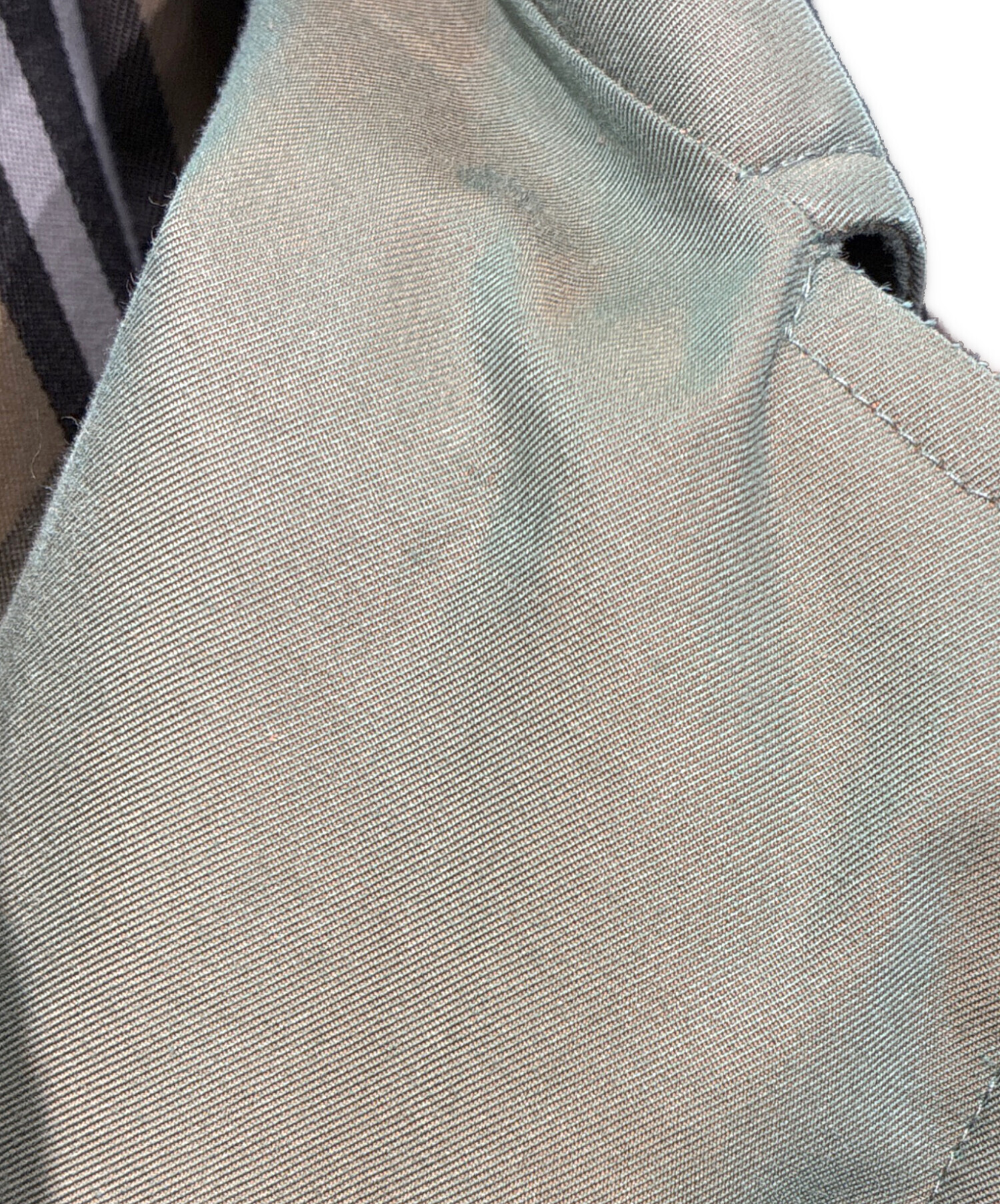 • Burberry's(バーバリー)Burberry's (バーバリー) 玉虫ステンカラーコート オリーブ サイズ:6の古着・服飾アイテム 最後部内側ボタン欠損