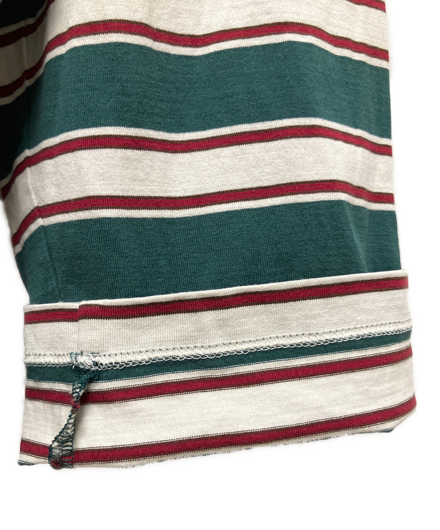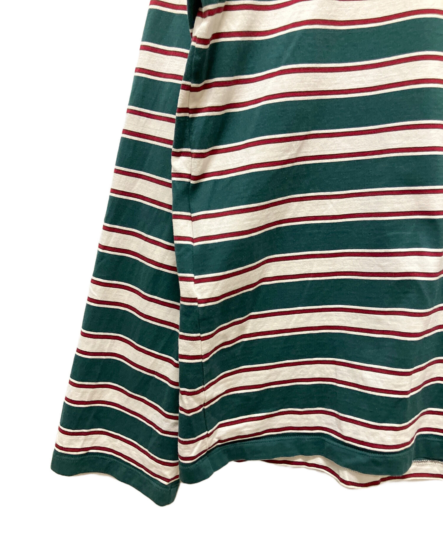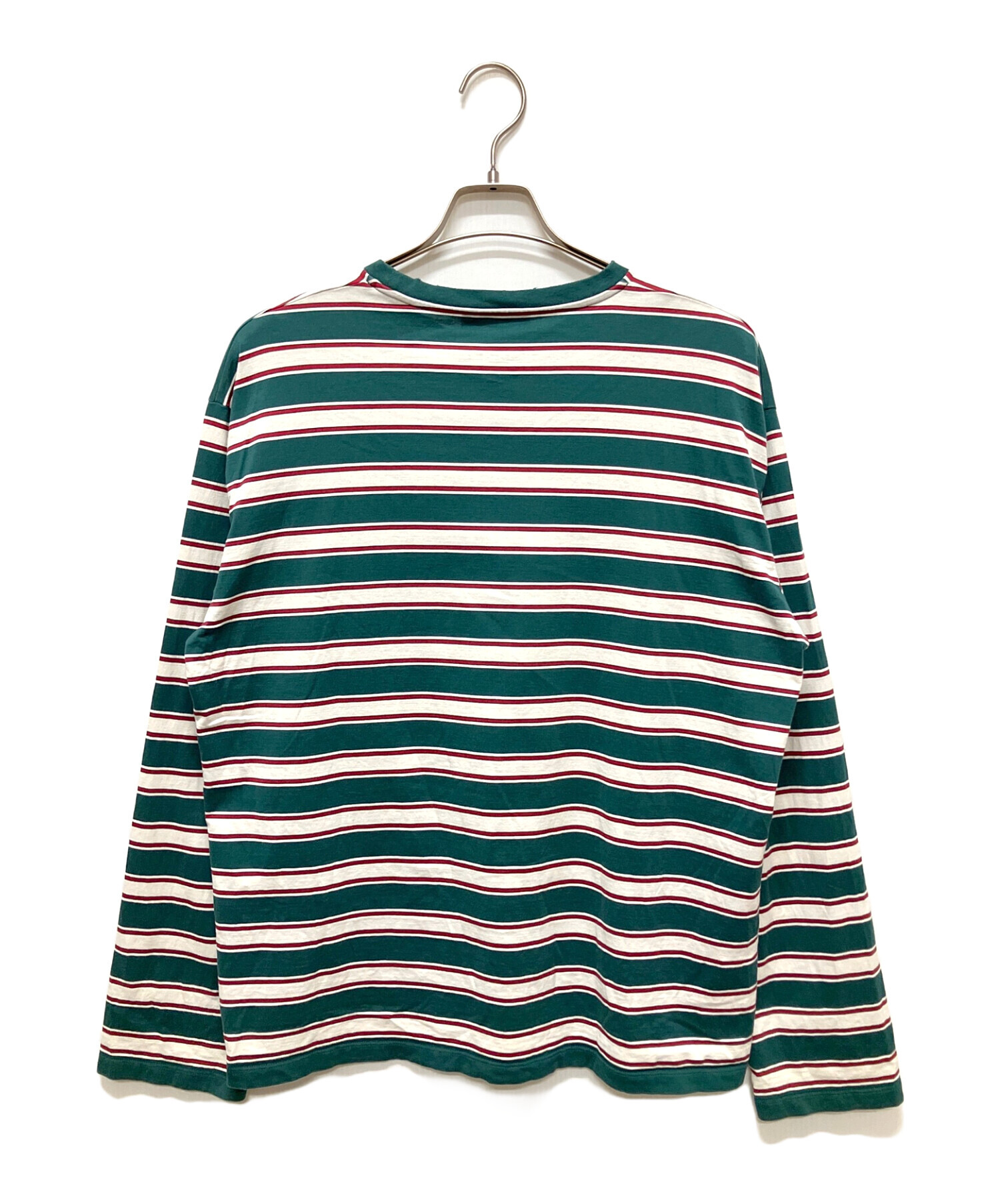 | スタッフコメント | 胸元のロゴパッチとカジュアルなカラーリングのボーダー柄が印象的な長袖カットソーです。ゆとりのあるオーバーサイズシルエットに仕上がっており、ストレスのない着心地が特徴です。テーラードジャケットなどのきれいめとの合わせもフィットする汎用性の高い1着です。 |