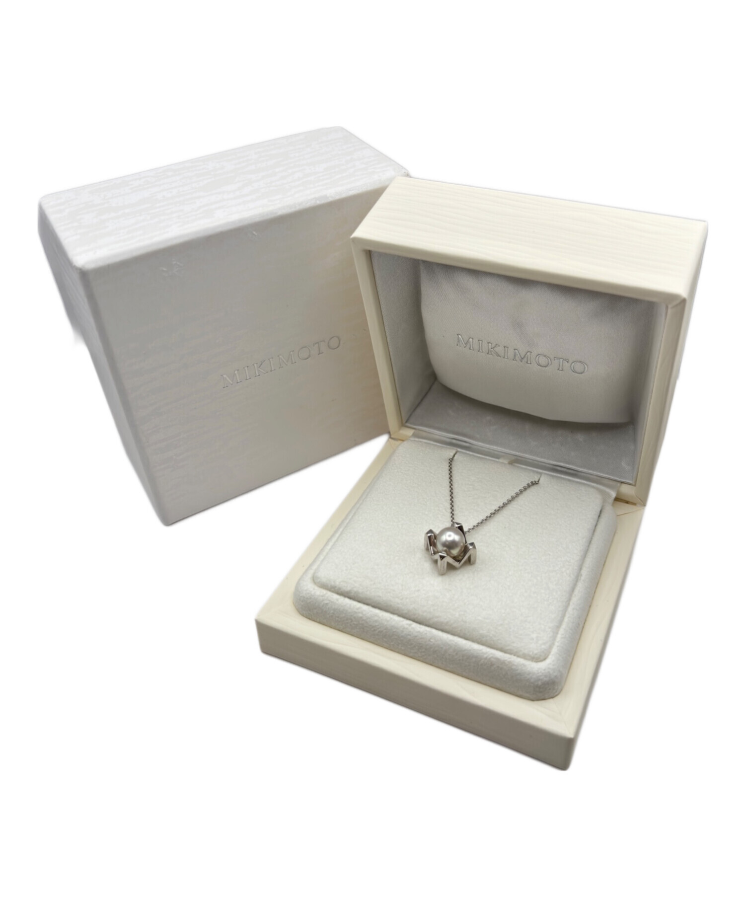 | スタッフコメント | MIKIMOTOの Mコレクションネックレスでございます。トップにはミキモトを象徴する大粒のパールがセットされており、上品ながら存在感のある逸品となっております。落ち着きのあるホワイトゴールドカラーとなり、華やかさと大人らしい印象を与えます。 |