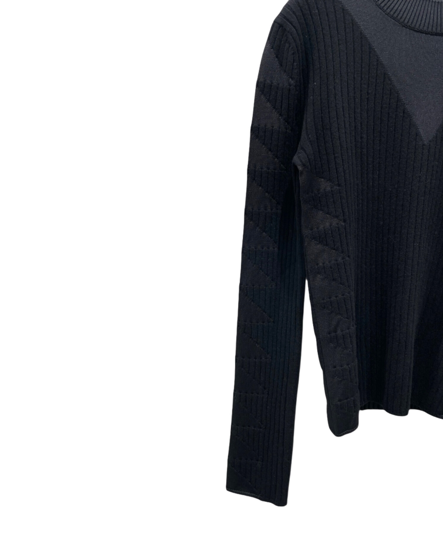 | 素材 | 前身頃:ウール65%、絹17%、カシミヤ16%、ナイロン1%、ポリウレタン1% 後身頃:絹79%、ウール14%、カシミヤ4%、ナイロン2%、ポリウレタン1% 袖:ウール74%、カシミヤ18%、絹6%、ナイロン1%、ポリウレタン1% 襟ぐり:絹96%、ナイロン3%、ポリウレタン1% |