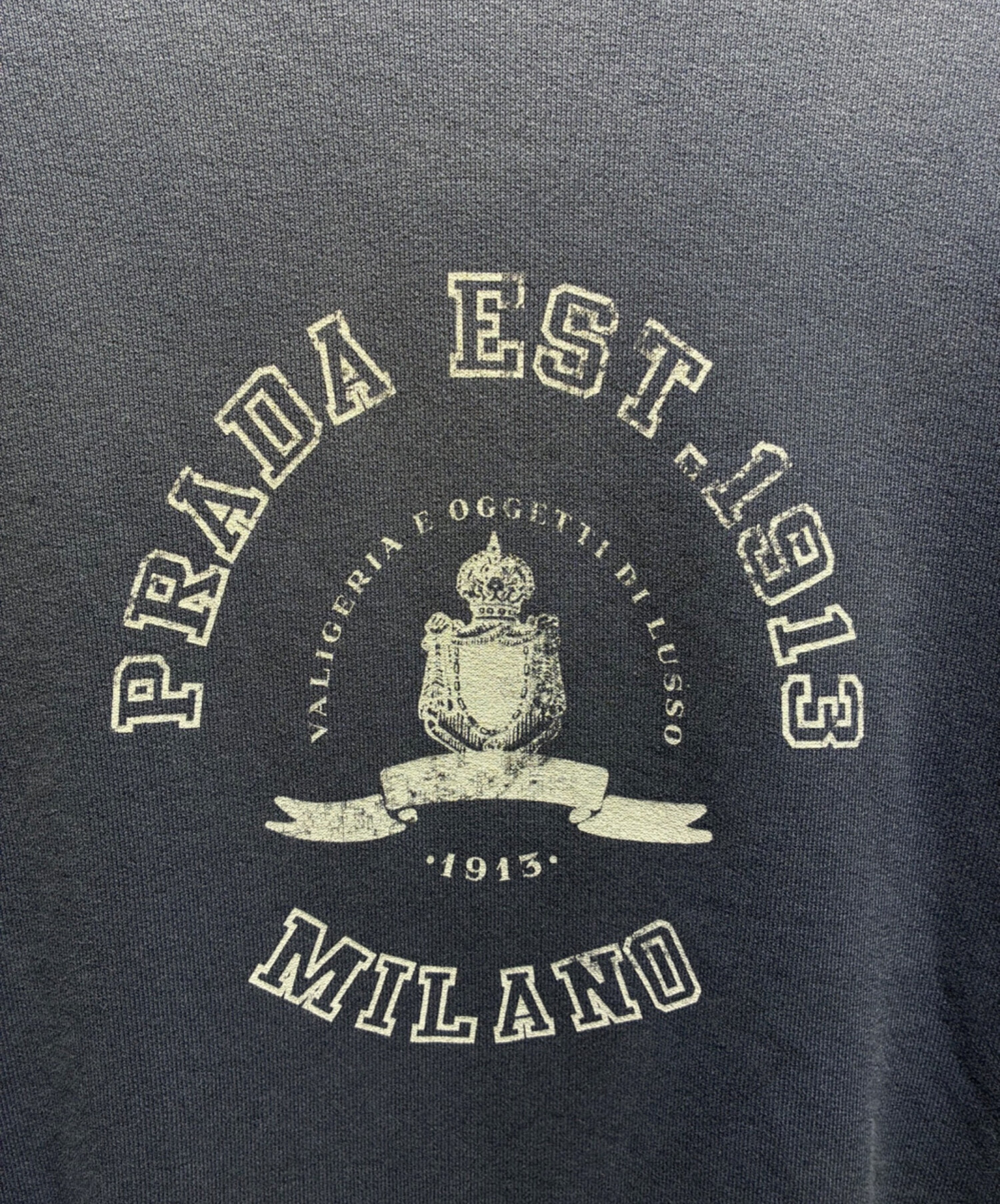 • PRADA(プラダ)PRADA (プラダ) コットンフリース スウェットシャツ/トレナー/UJL19C ブルー サイズ:Mの古着・服飾アイテム ダメージ加工有