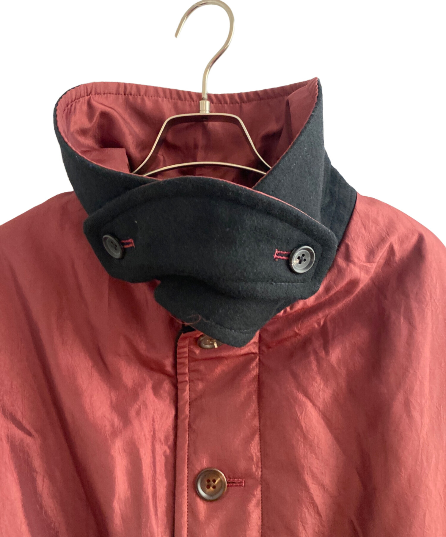 スタッフコメント 表裏で異なるデザインを楽しめるリバーシブル仕様のコート。レッド×ブラックの大胆な配色と、独特なプリントデザインが存在感を放ちます。程よくゆとりのあるシルエットで、レイヤードスタイルにも対応可能。軽やかな素材感ながら保温性もあり、モード感と実用性を兼ね備えた一着です。