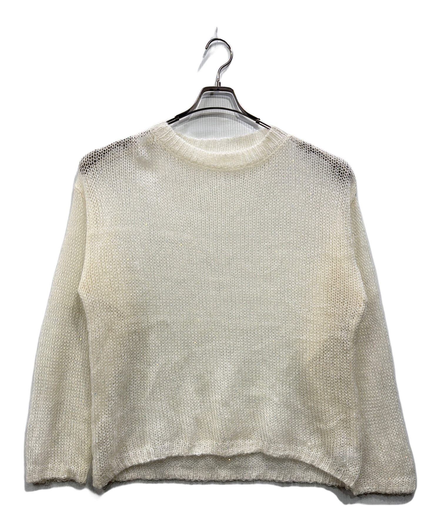 • CASA FLINE(カーサフライン)CASA FLINE (カーサフライン) 透かし編みスパンコールモヘアニット アイボリー サイズ:Freeの古着・服飾アイテム フロントホツレ有