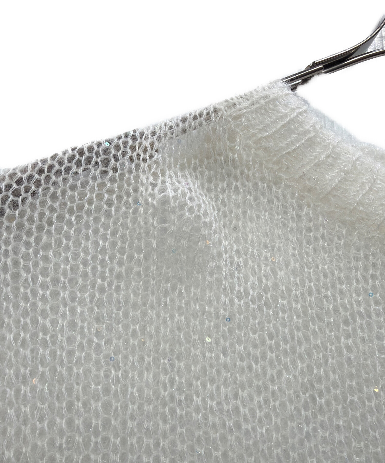 透かし編みスパンコールモヘアニット