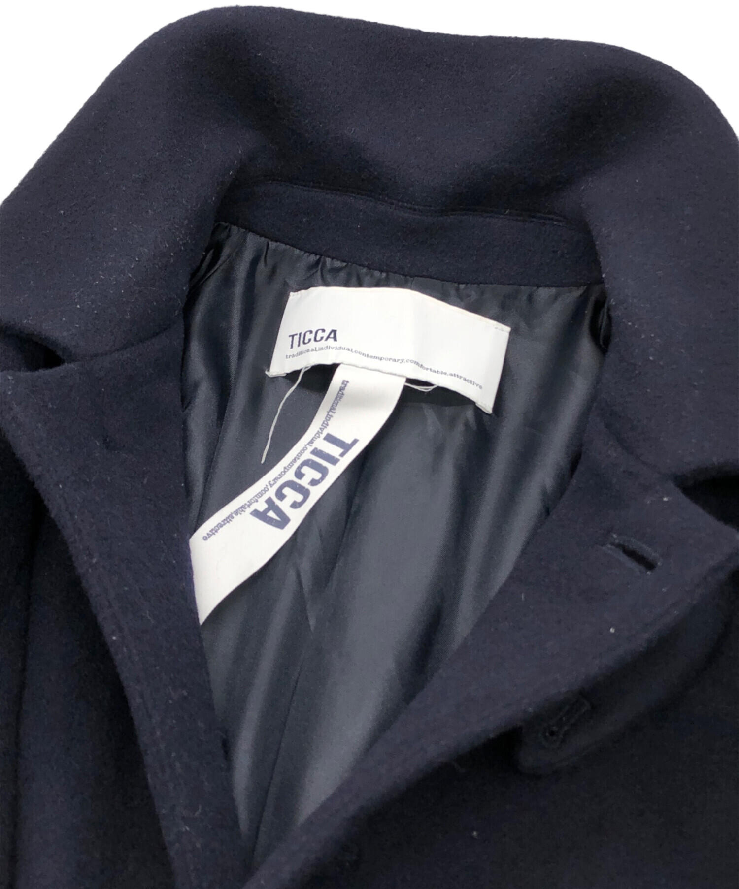 • ticca(ティッカ)ticca (ティッカ) HOSHII TO DEAU (ホシイトデアウ) ウールステンカラーコート ネイビー サイズ:FREEの古着・服飾アイテム 毛羽立ち・毛玉有