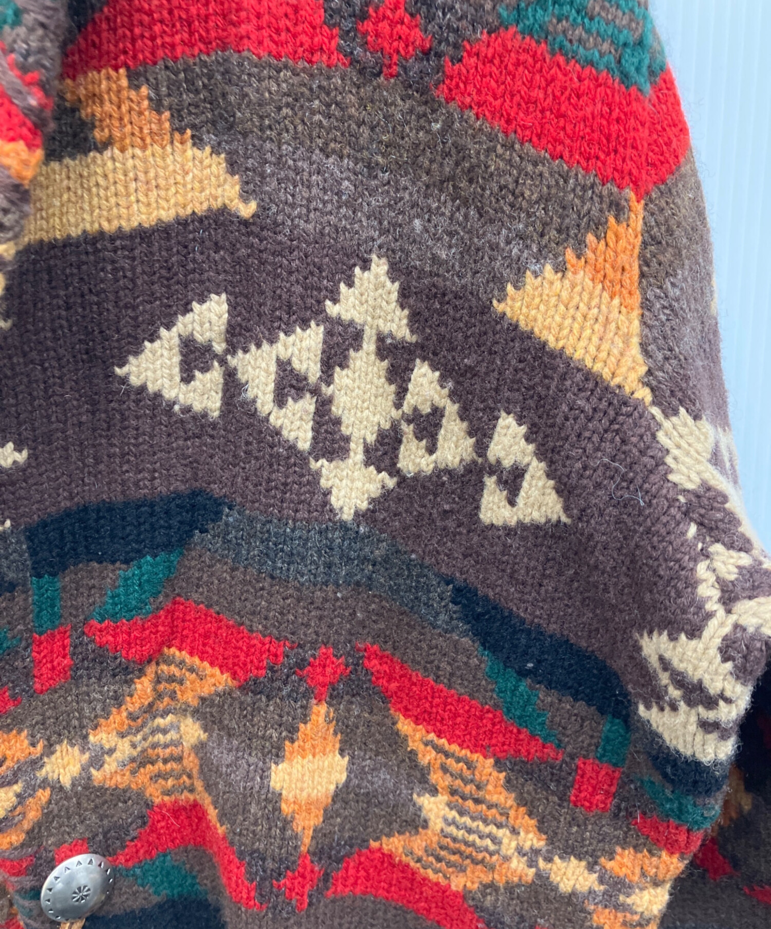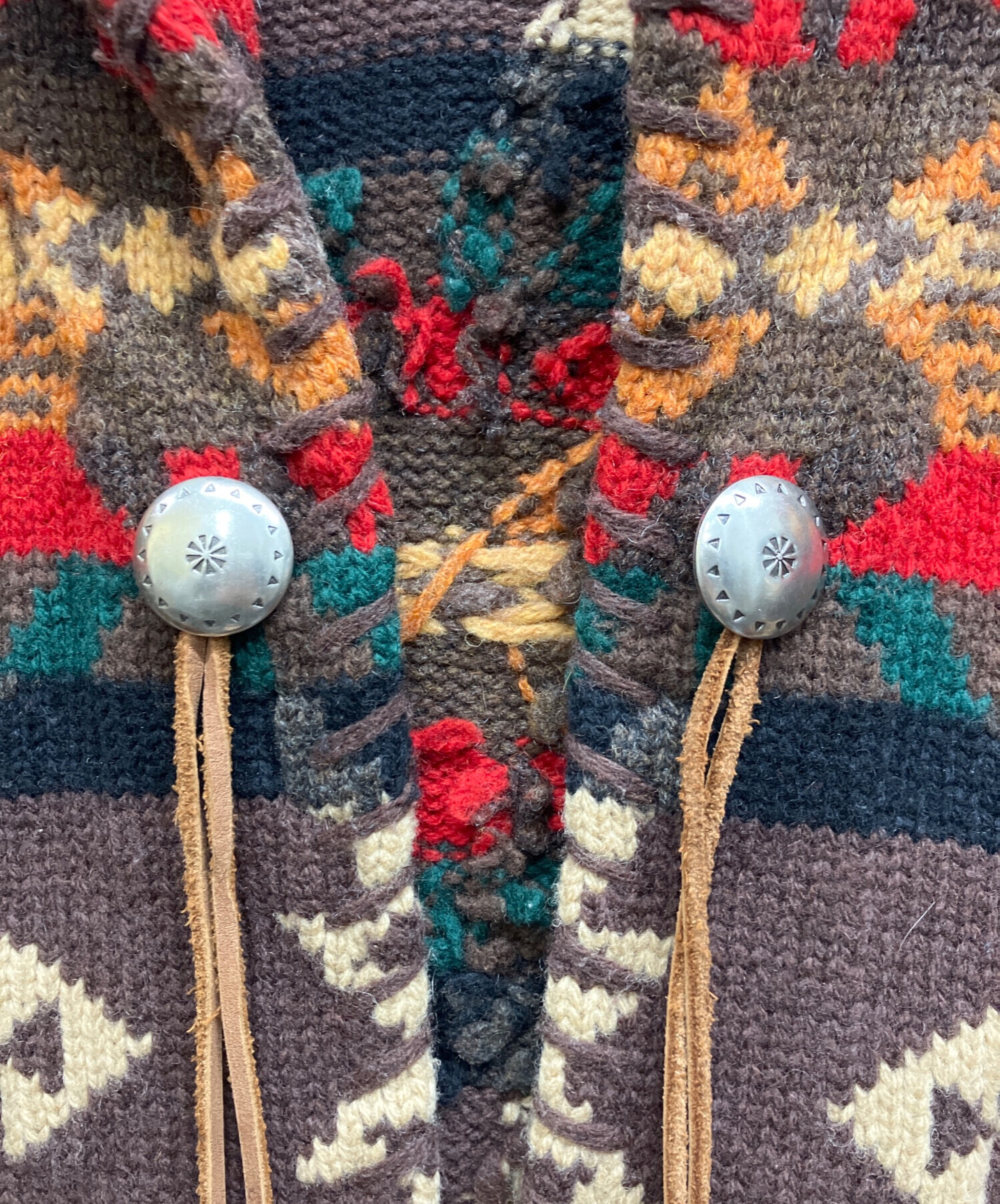 ハンドニット ネイティブ柄 コンチョボタンカーディガン