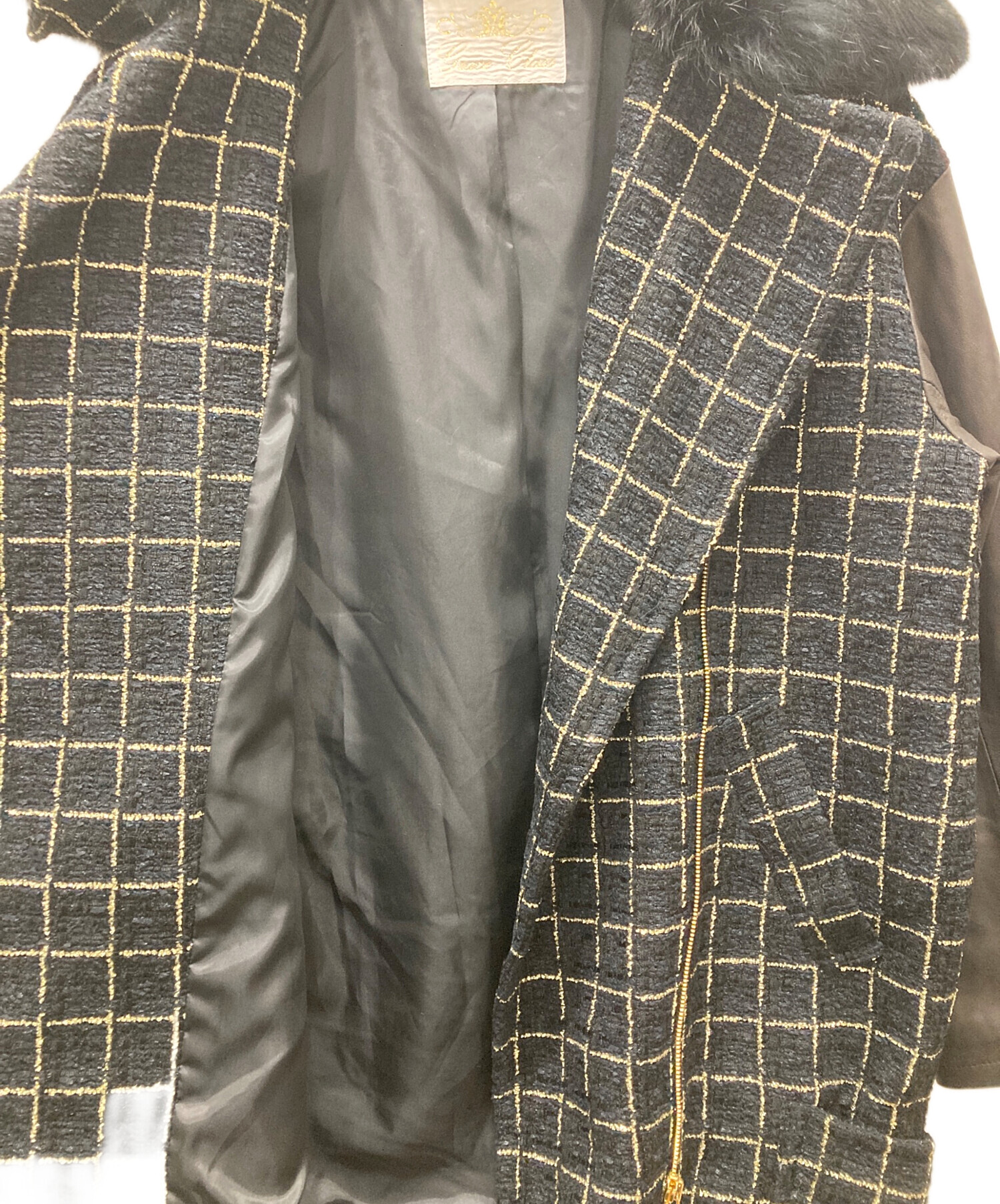 | 素材 | 表地:ナイロン62%、綿34%、ポリエステル4% 袖部分:羊革 衿部分:ラビットファー 裏地:ポリエステル100% |