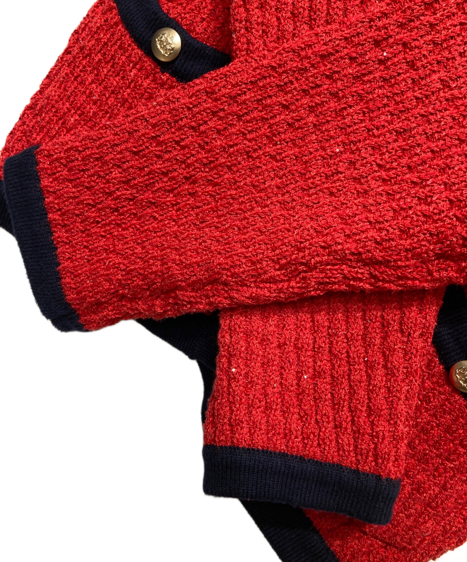 配色金ボタンニットジャケット
