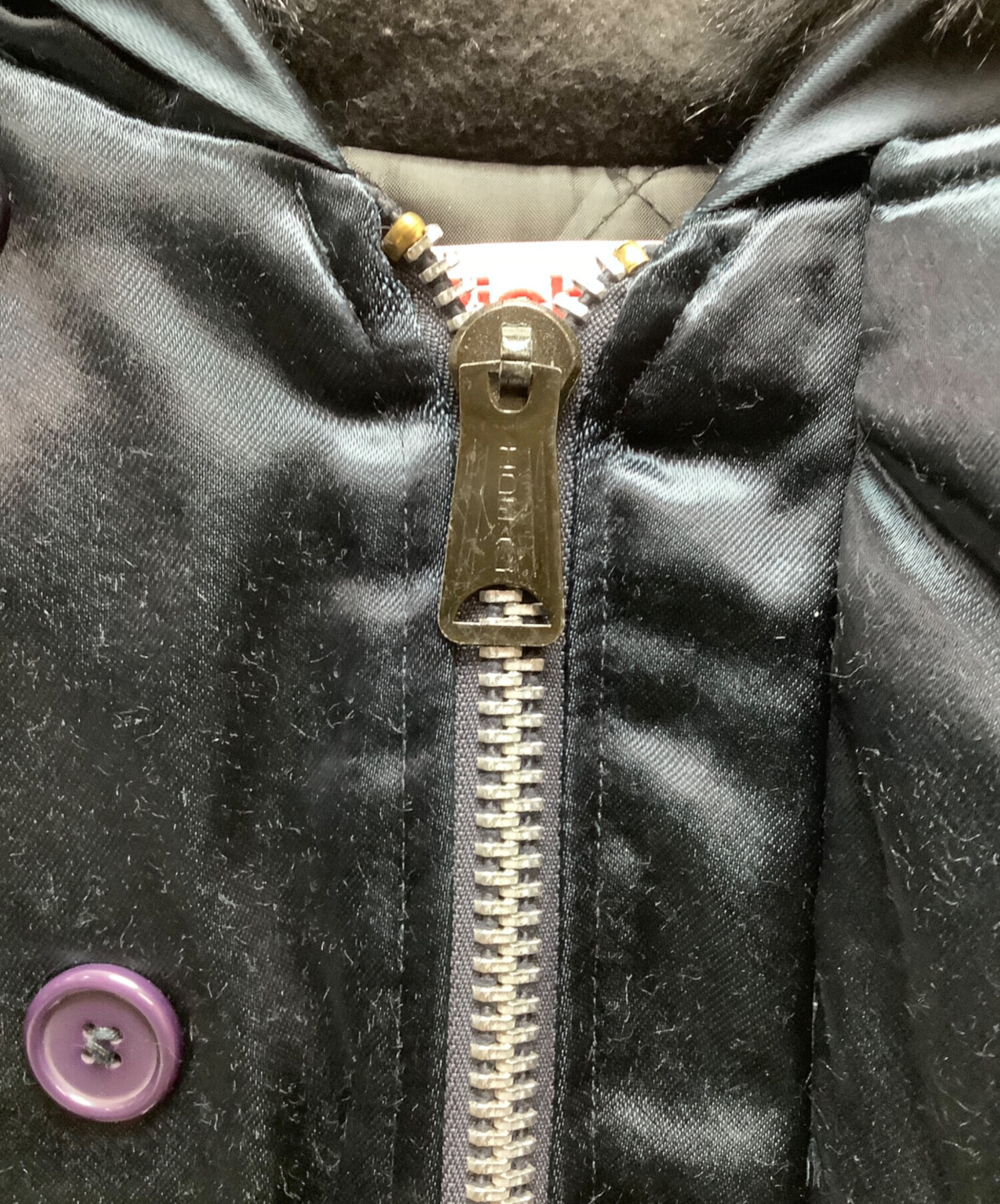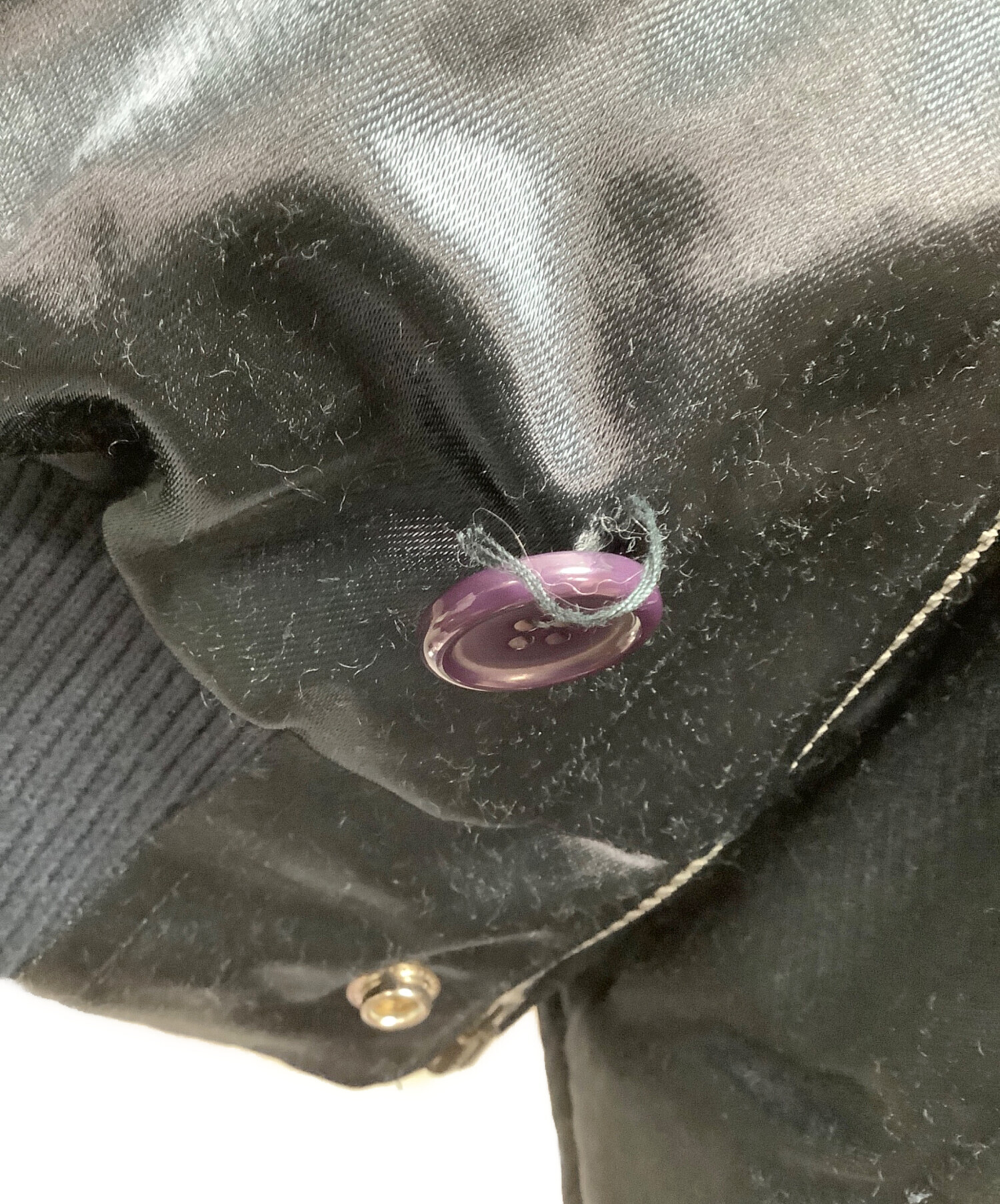 内側毛羽立ち、袖ヨゴレ、最下部ボタン破損、ホツレございます。