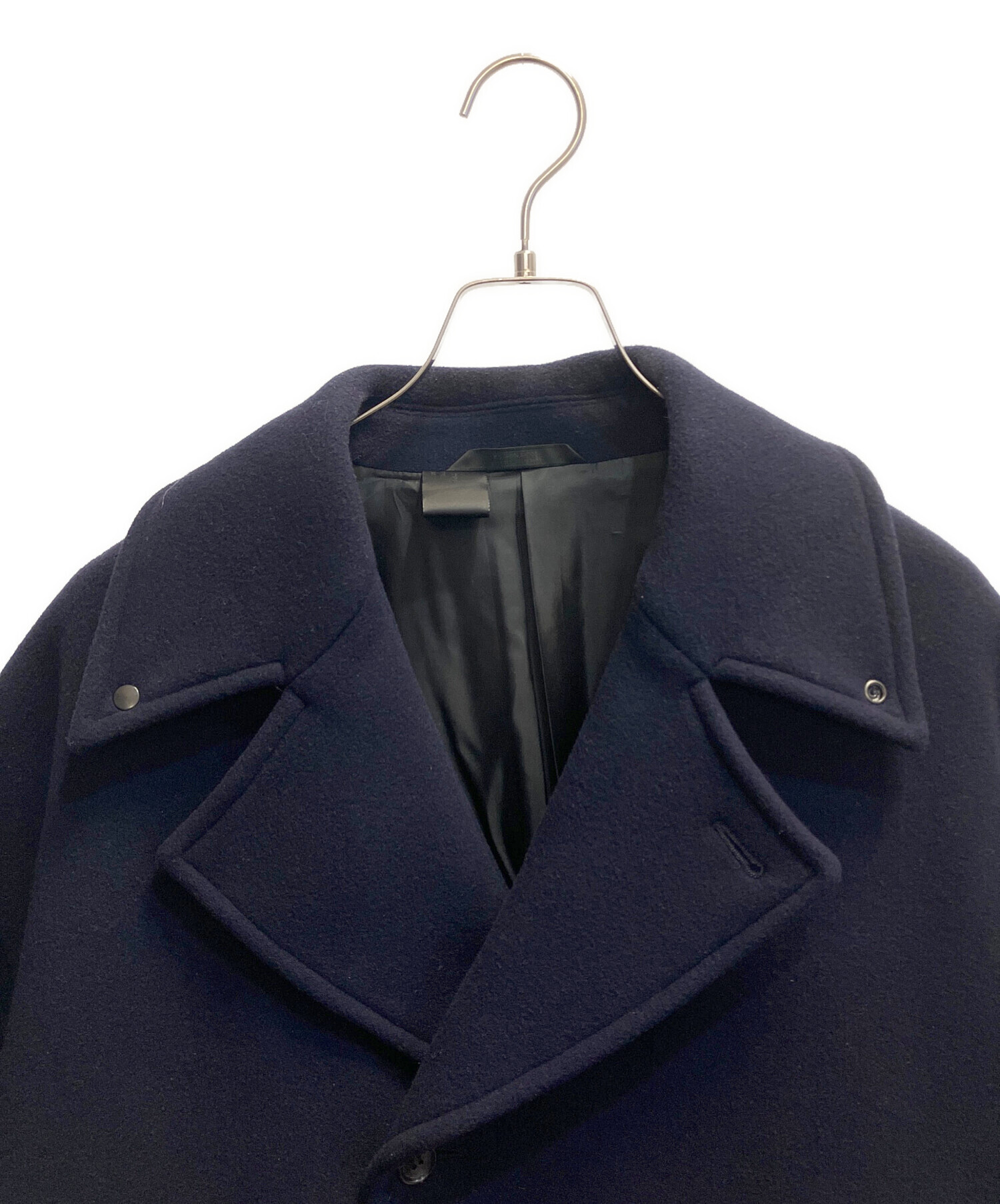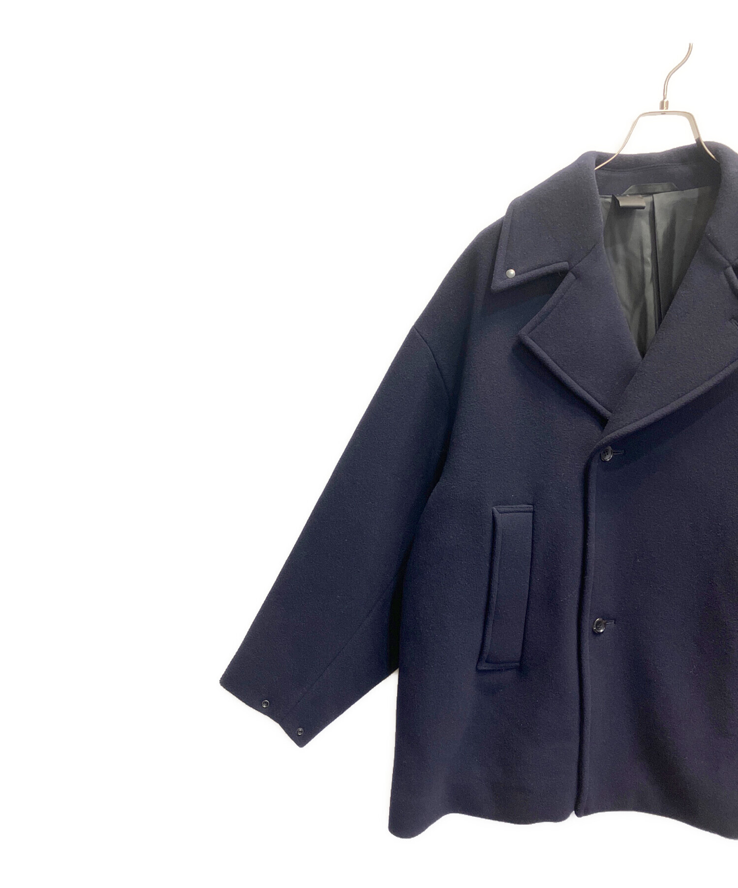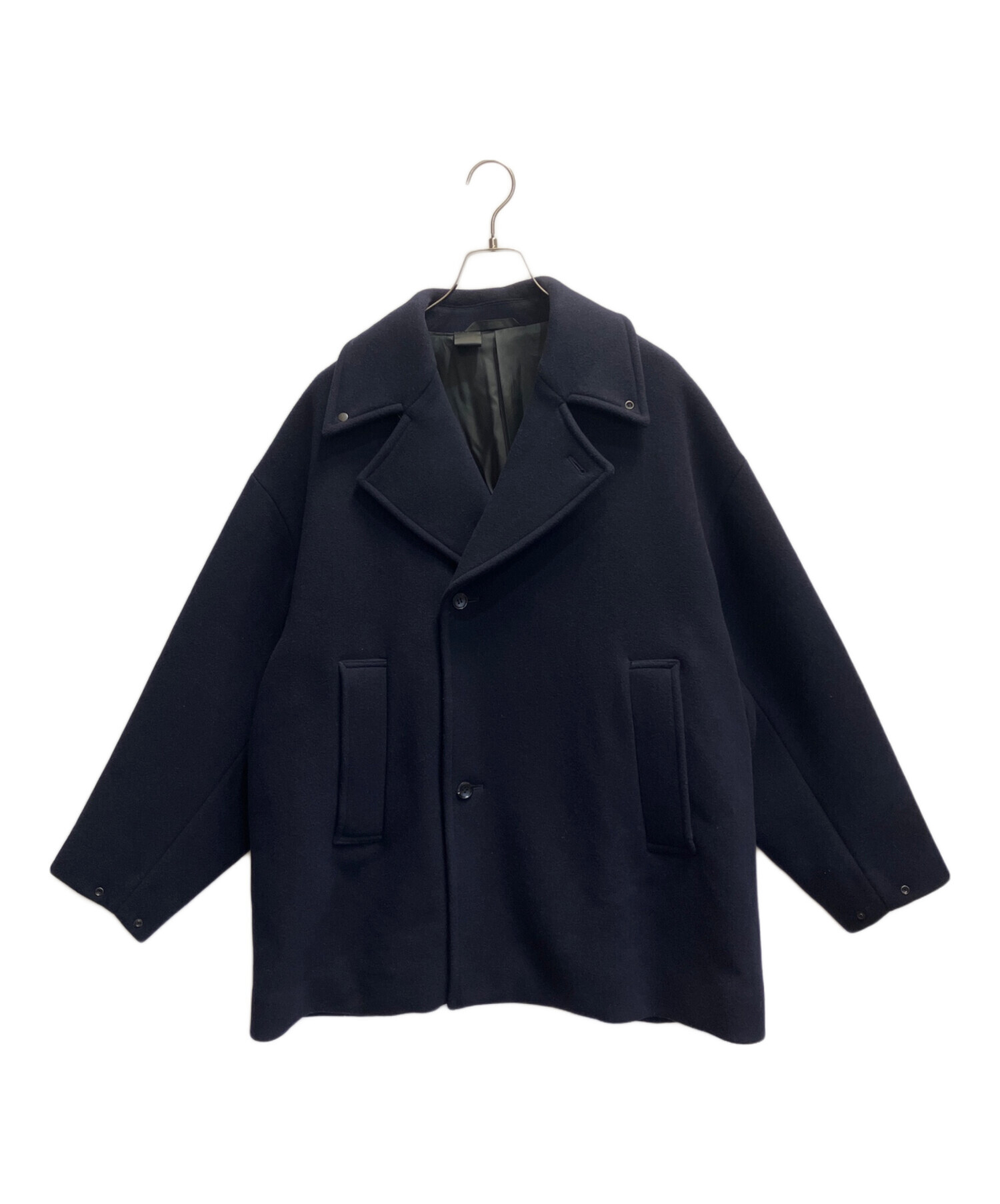 | スタッフコメント | N.HOOLYWOOD(エヌ ハリウッド)Pコート ドットボタン使いの襟元はスタンドカラーにアレンジすることができ、袖口はアジャストが可能です。ドロップショルダー仕様のゆったりとリラックスした、Aラインシルエットで使いやすい一着です。 |