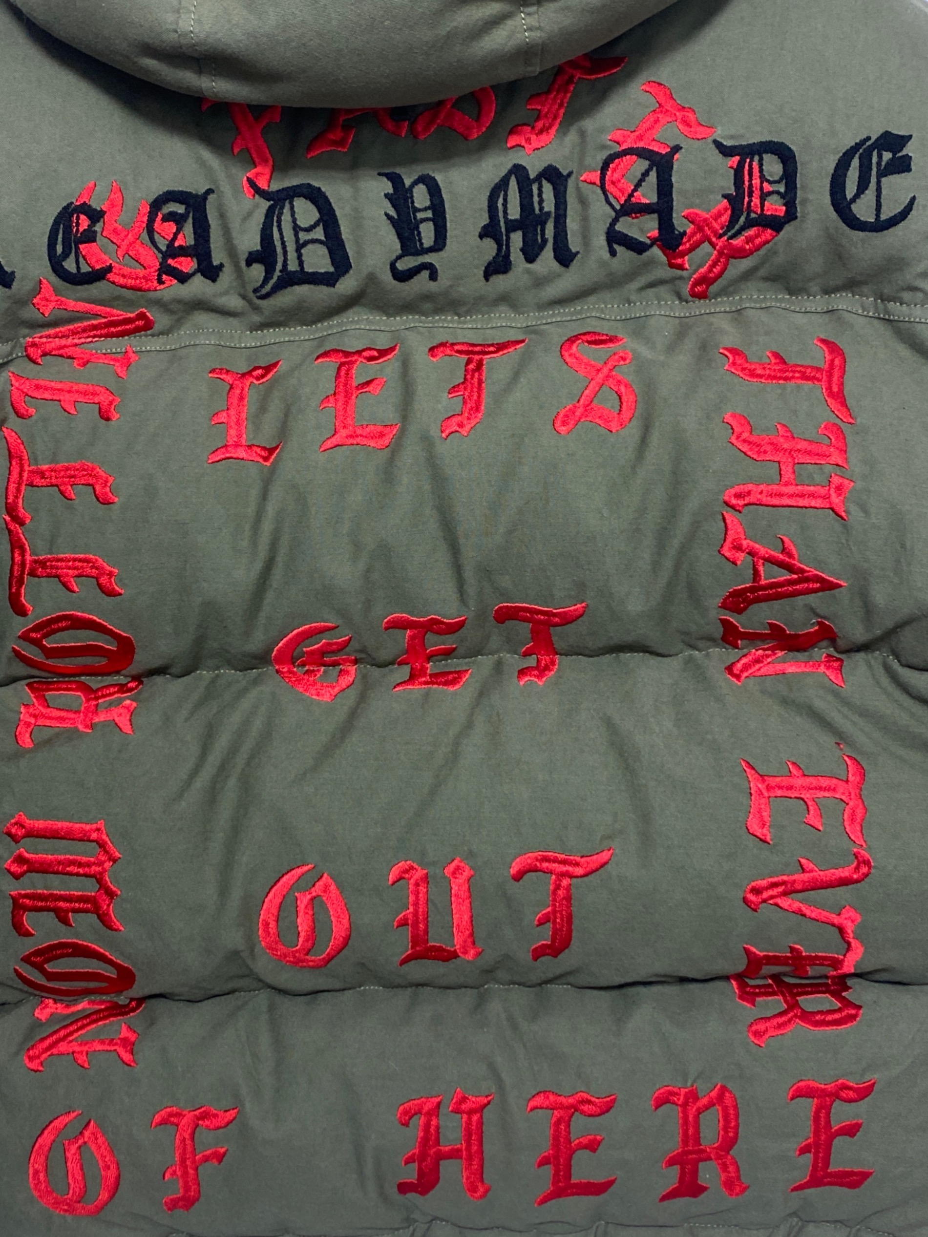 | スタッフコメント | ミリタリー再構築の質感とアート性の高いタイポグラフィが融合した存在感ある一着です。ヴィンテージファブリックの風合いが奥行きを生み、独自のプリントが個性を際立たせます。防寒性に優れつつ、スタイルの主役として圧倒的な力を持つプロダクトです。 |