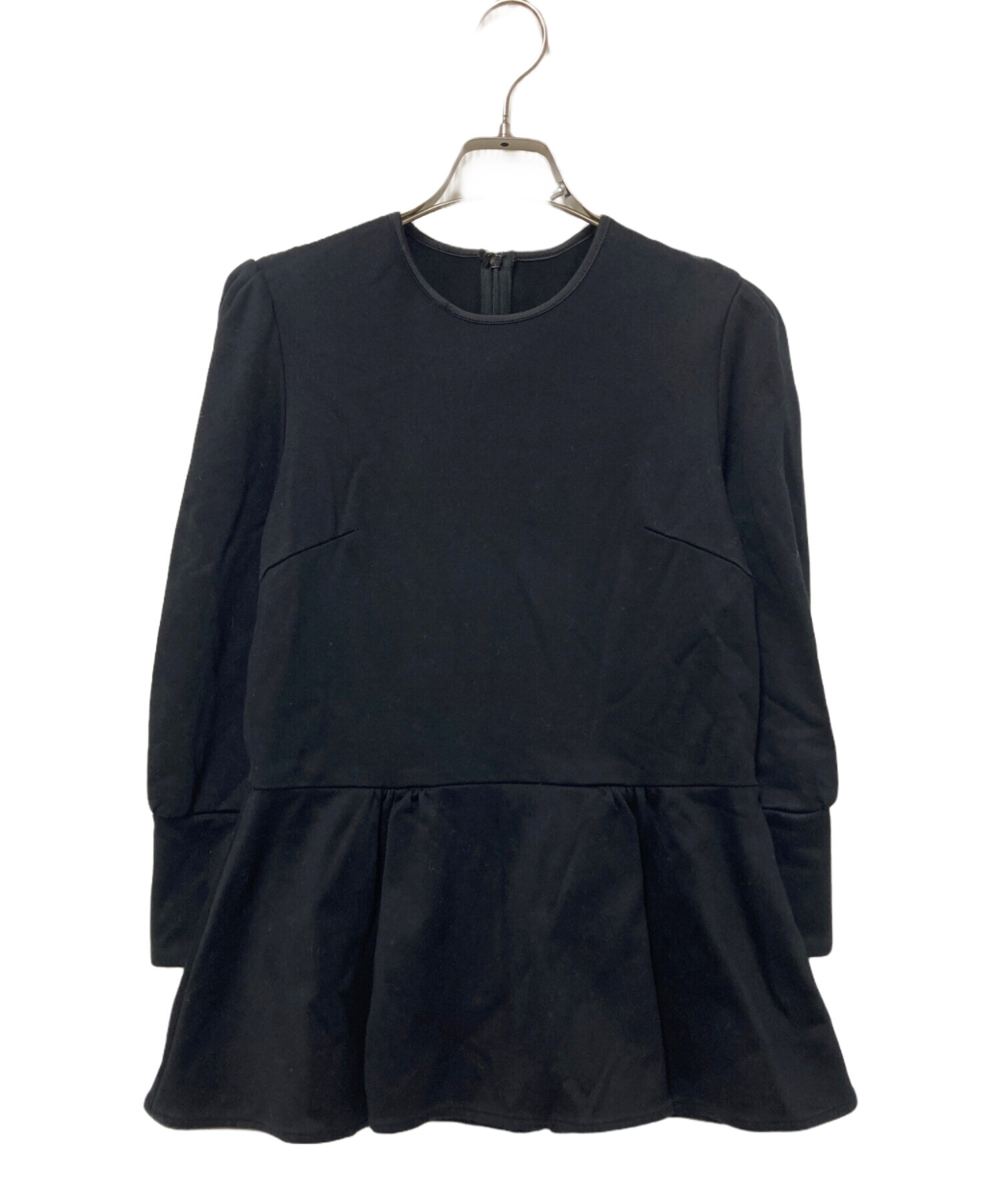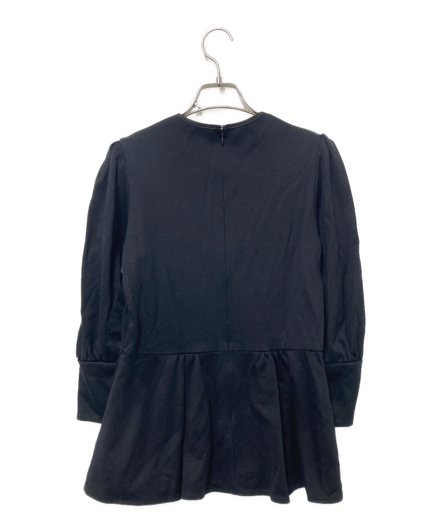 • BORDERS at BALCONY(ボーダーズアットバルコニー)BORDERS at BALCONY (ボーダーズアットバルコニー) ペプラムカットソー ブラック サイズ:36の古着・服飾アイテム 襟ホツレ