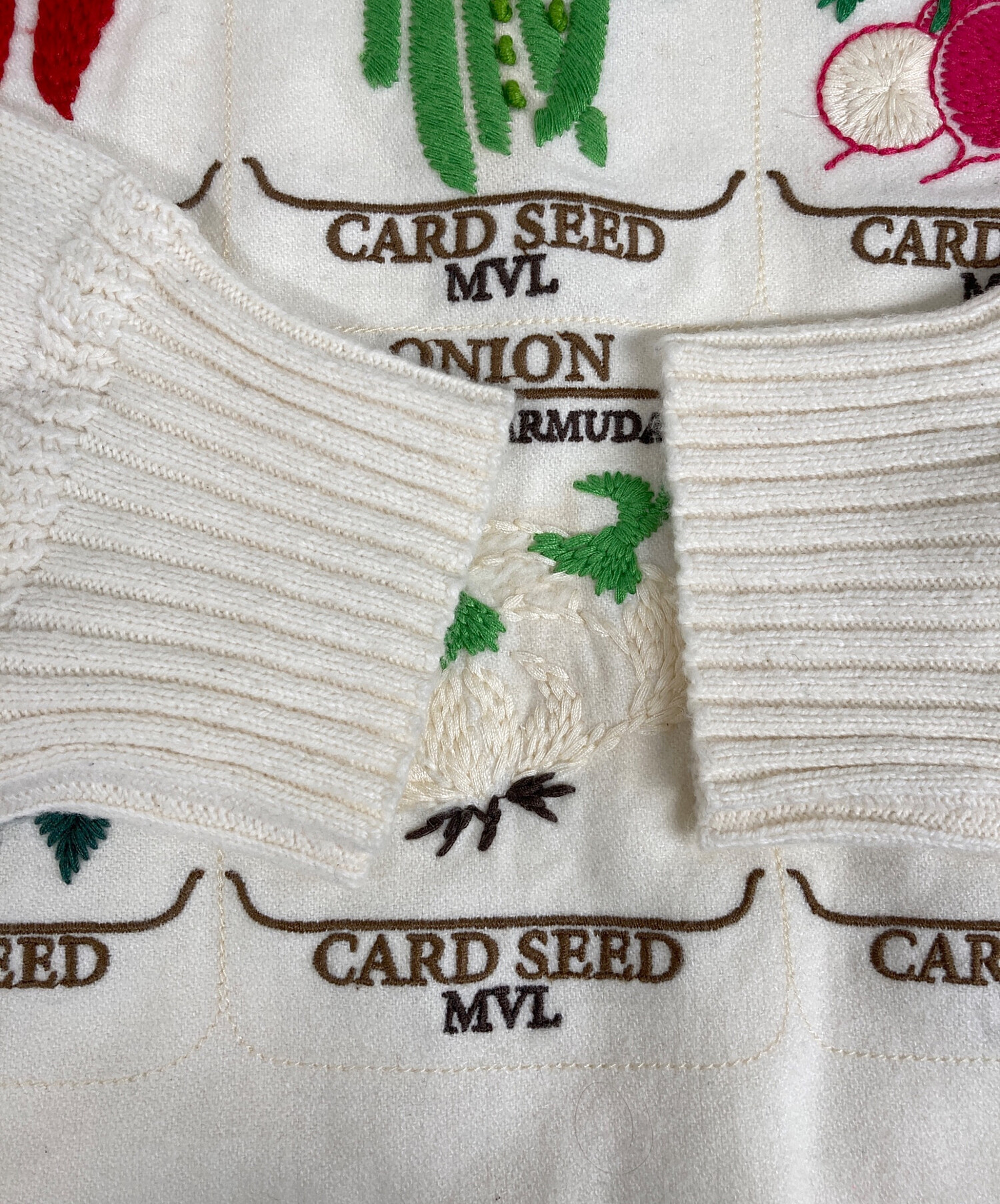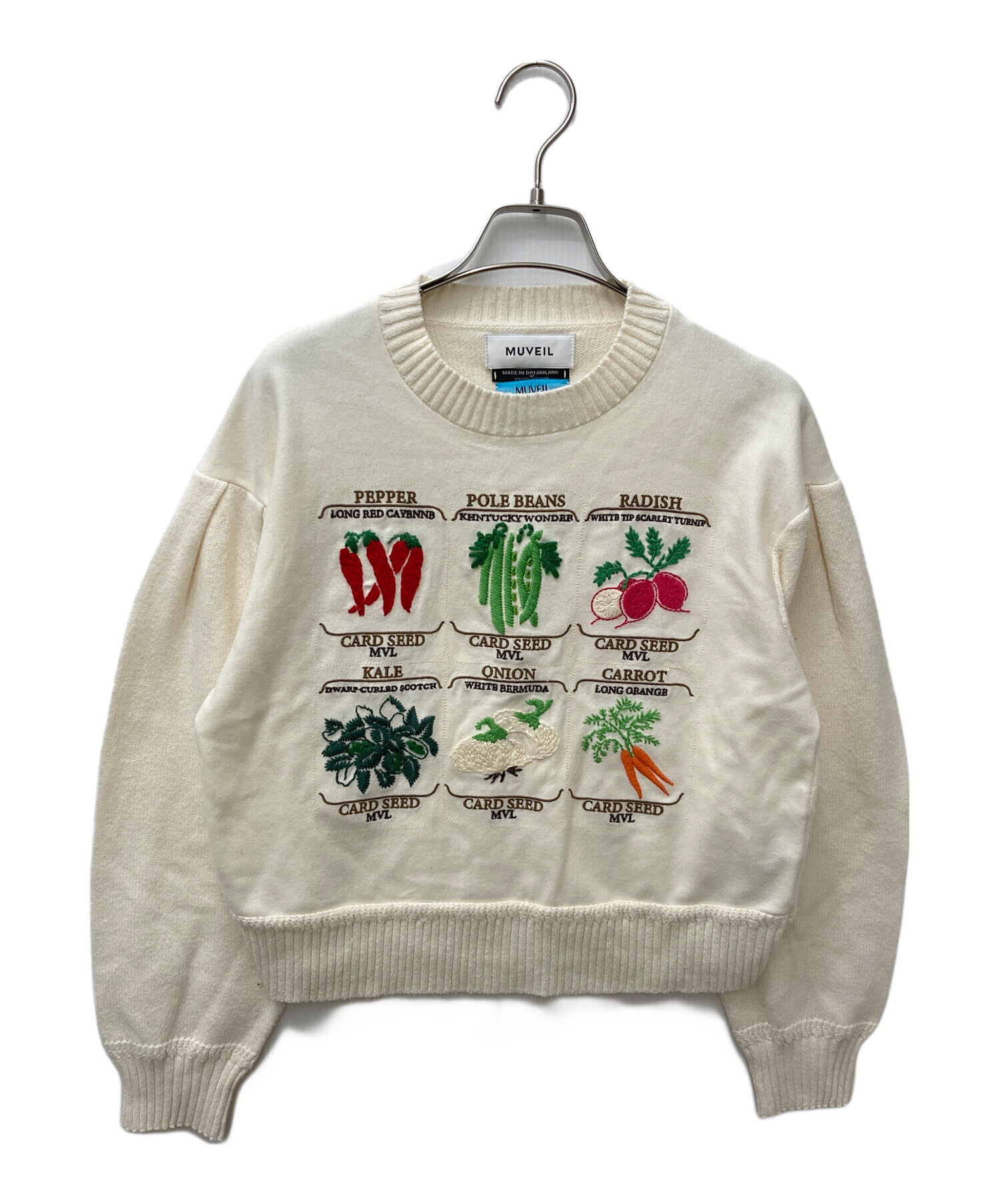 • MUVEIL(ミュベール)MUVEIL (ミュベール) ベジタブル刺繍プルオーバー アイボリー サイズ:36の古着・服飾アイテム やや毛羽立ち