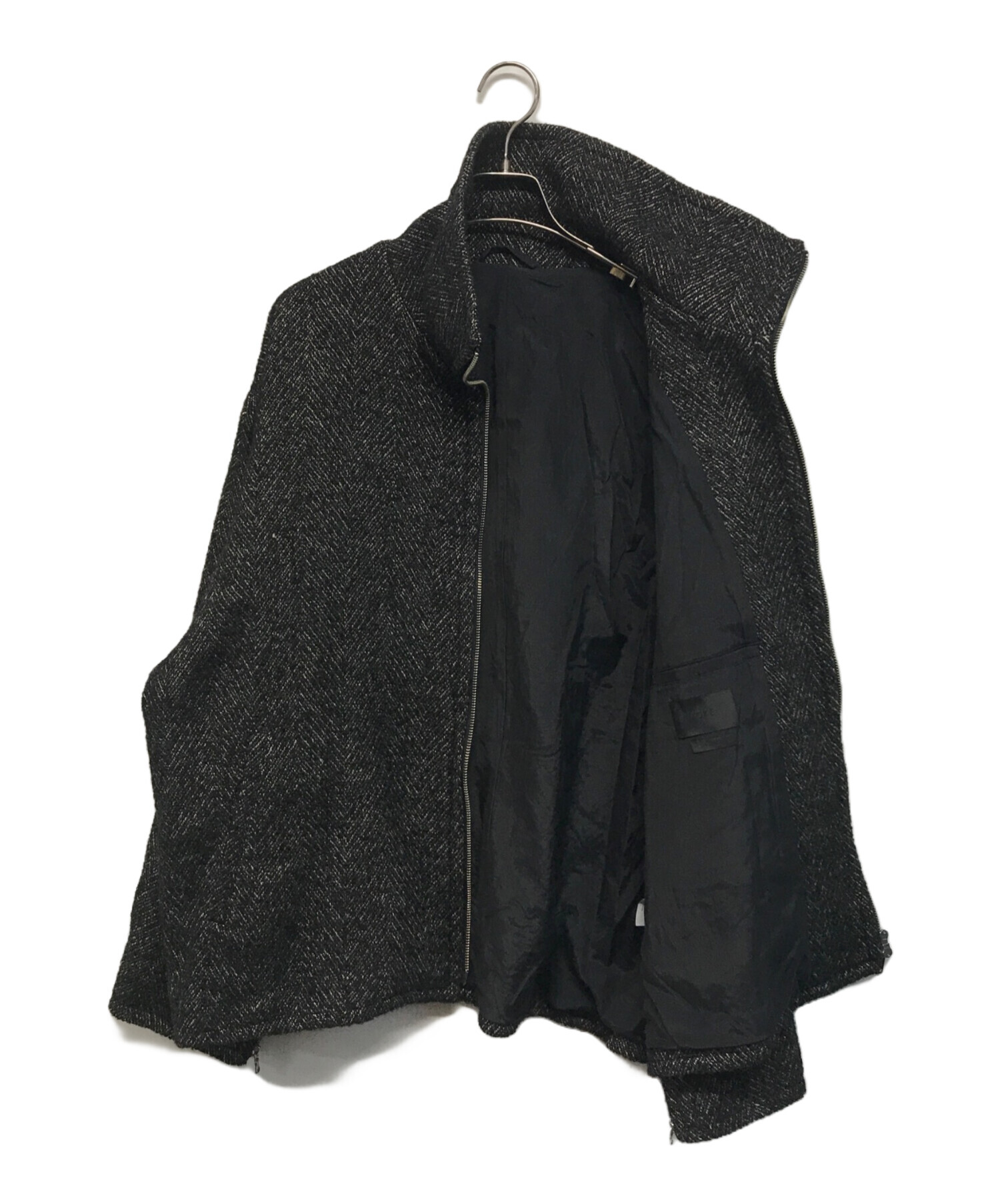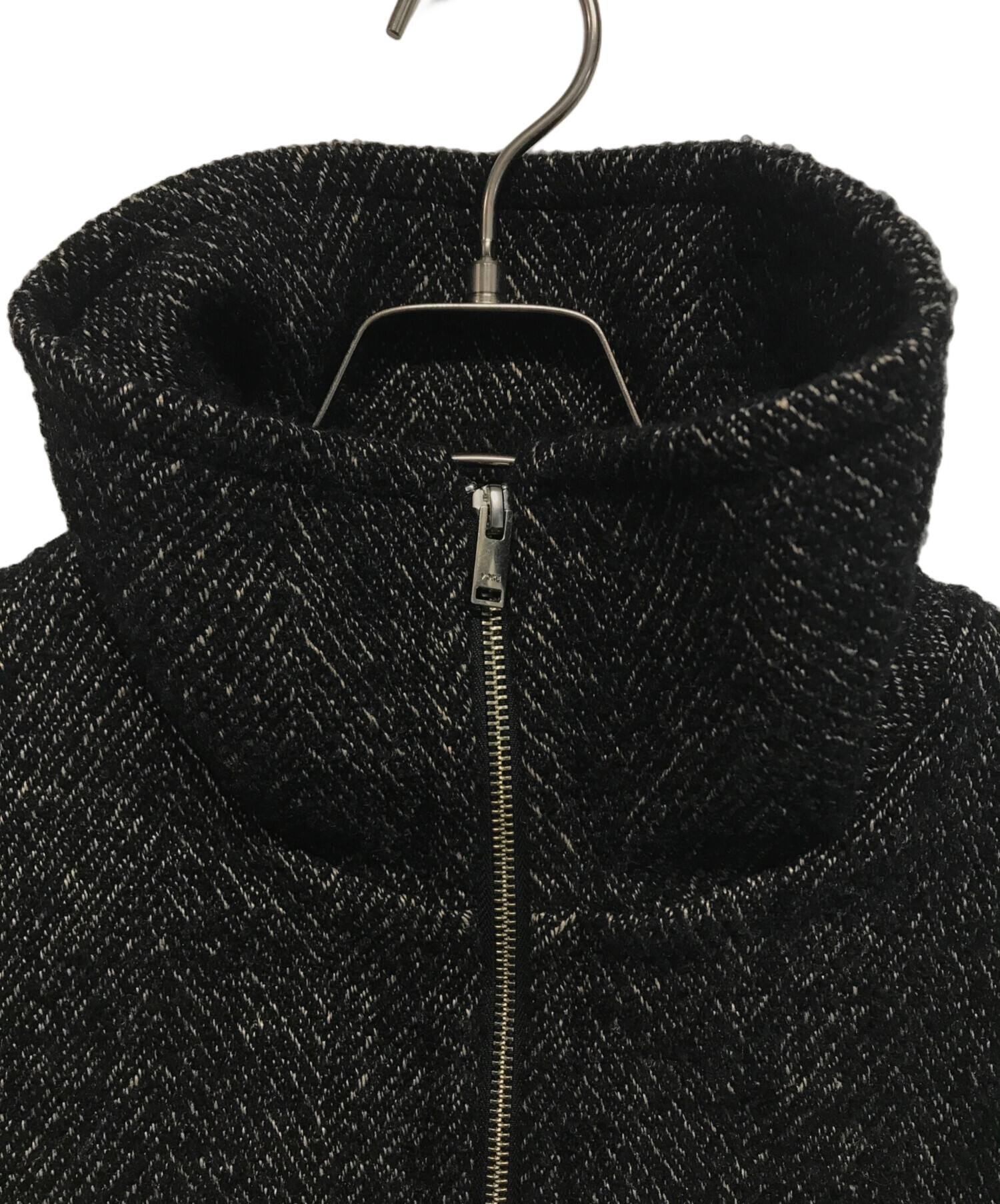 | スタッフコメント | こちらのジャケットは、フロントファスナーを閉めると特徴的な高めのスタンドカラーになり、開けると大きめの襟元として着用でき、開閉によって異なる印象を楽しめます。 一見すると通常のヘリンボーンツイードに見えますが、縦糸に杢糸、横糸に2種類のループ糸を使用することで、より深みのある表情を実現しています。 |