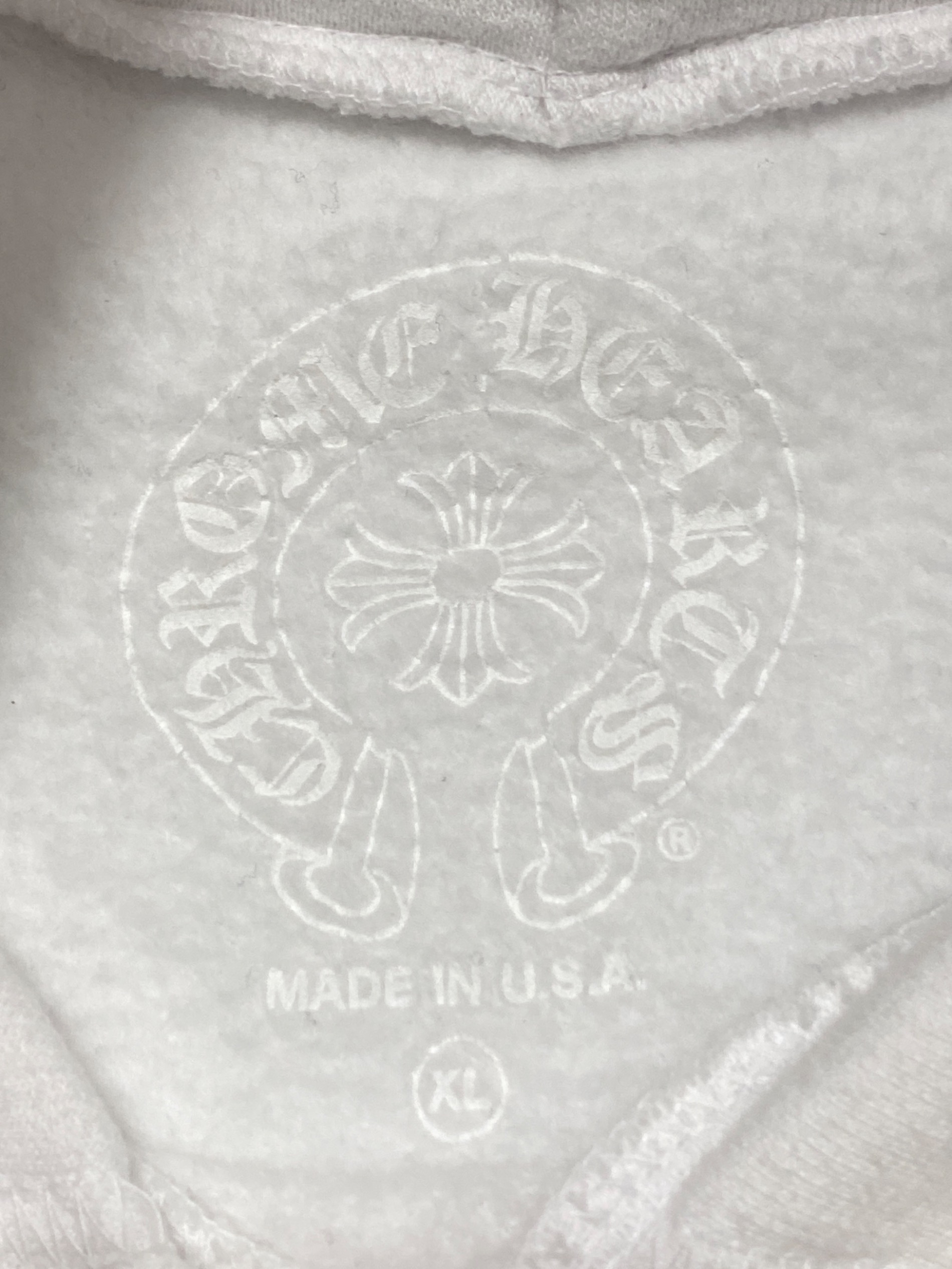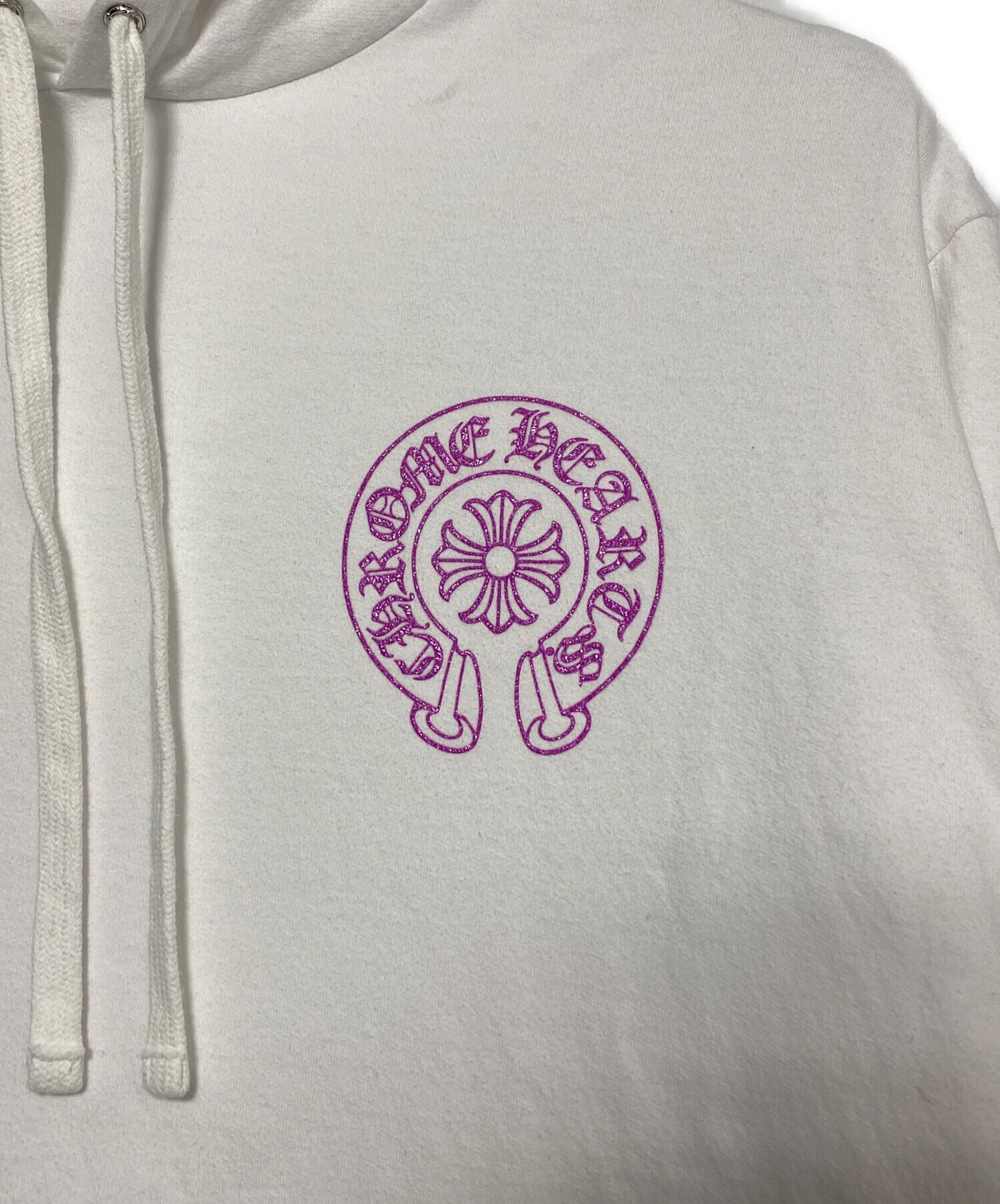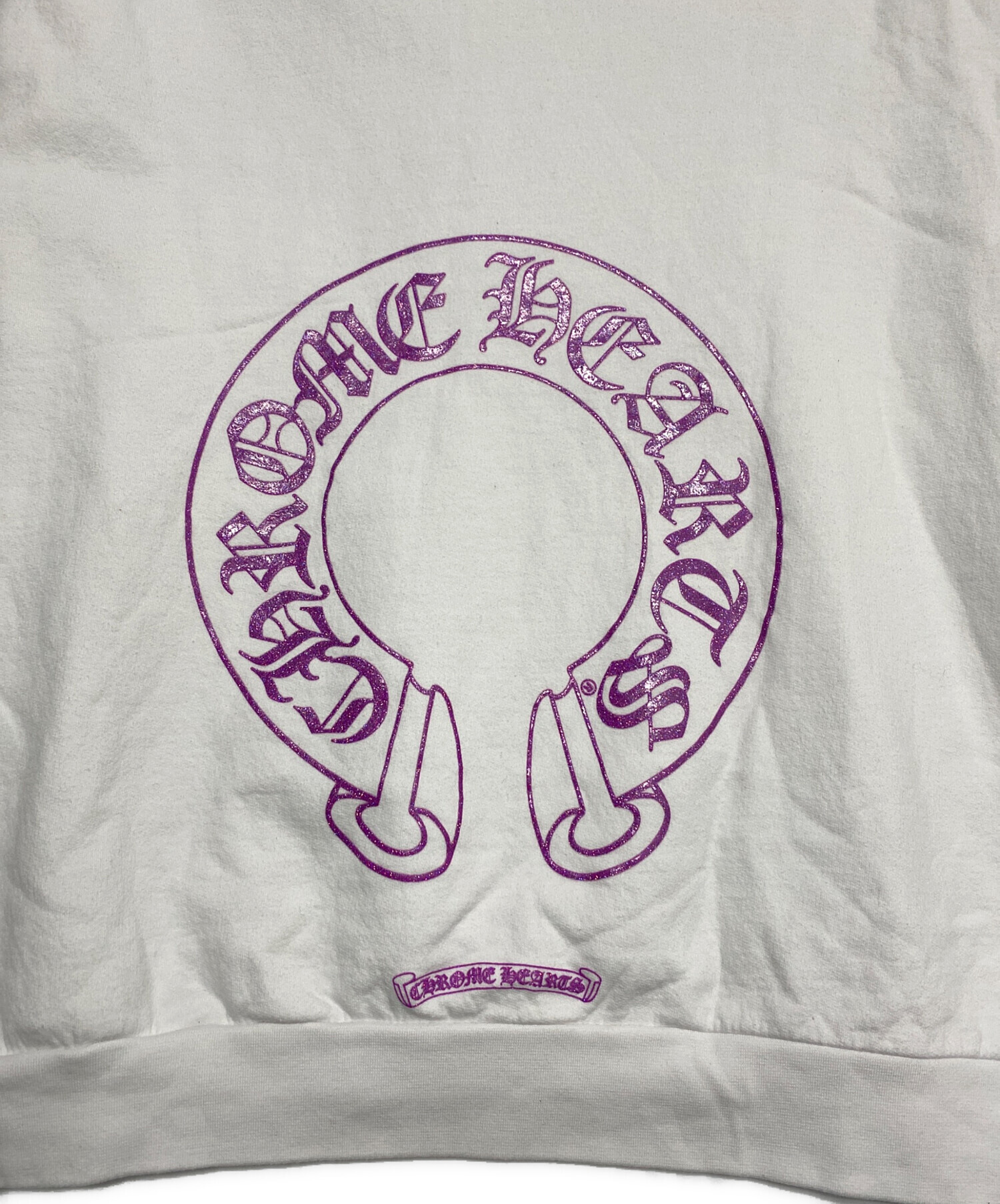 • CHROME HEARTS(クロムハーツ)CHROME HEARTS (クロムハーツ) Purple Glitter Horseshoe Hoodie ホワイト サイズ:XLの古着・服飾アイテム 首元若干のヨゴレ