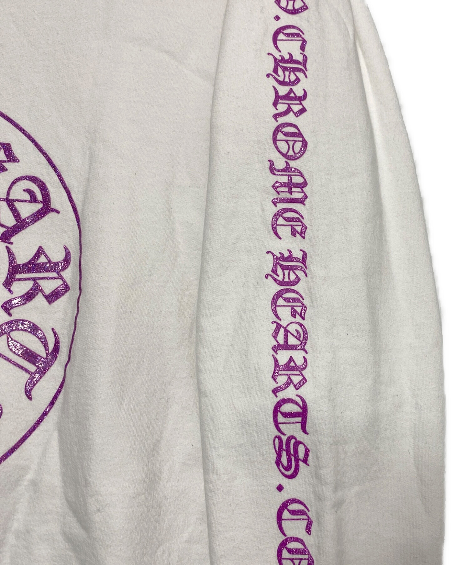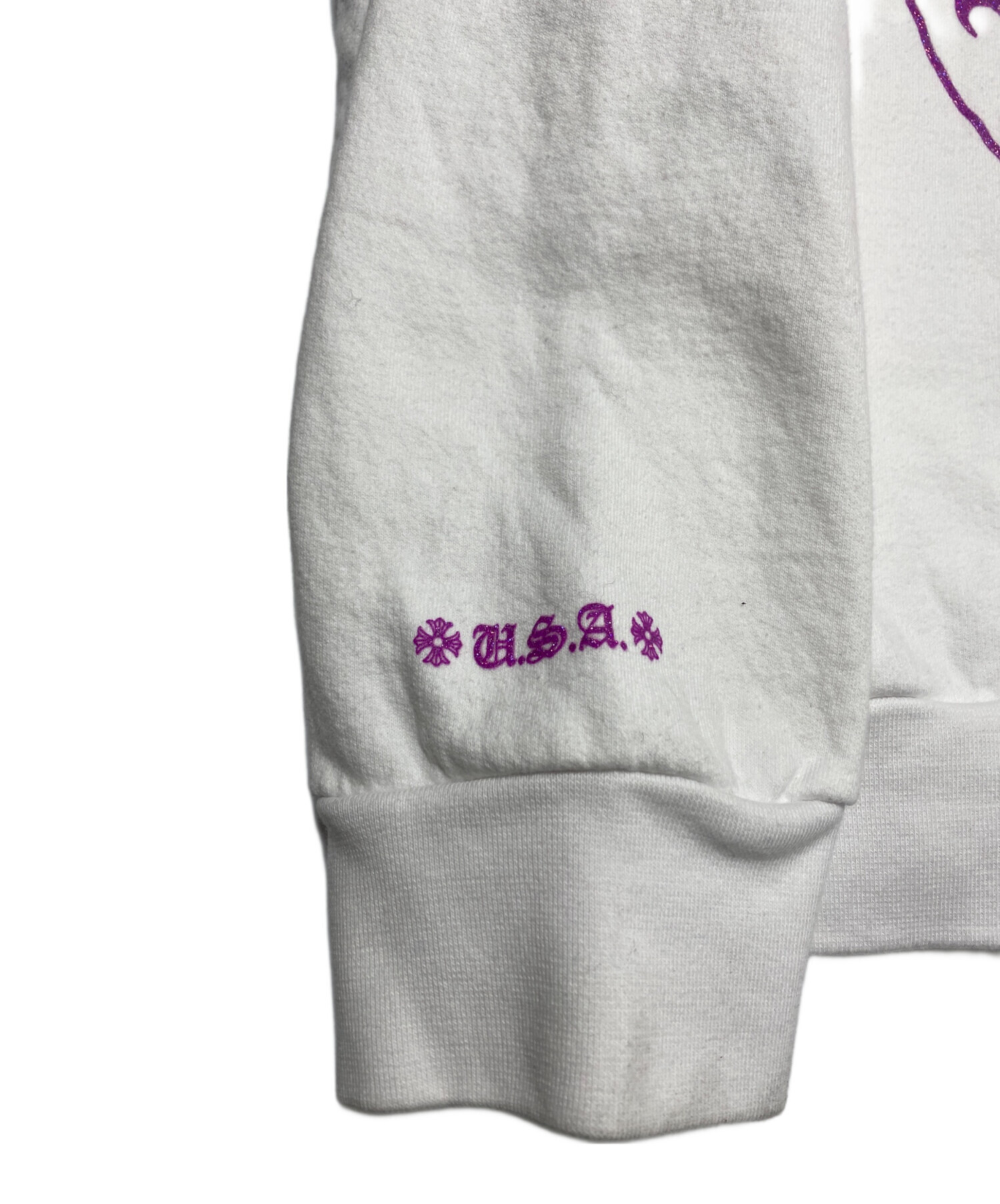 • CHROME HEARTS(クロムハーツ)CHROME HEARTS (クロムハーツ) Purple Glitter Horseshoe Hoodie ホワイト サイズ:XLの古着・服飾アイテム 袖部分若干の毛羽立ち