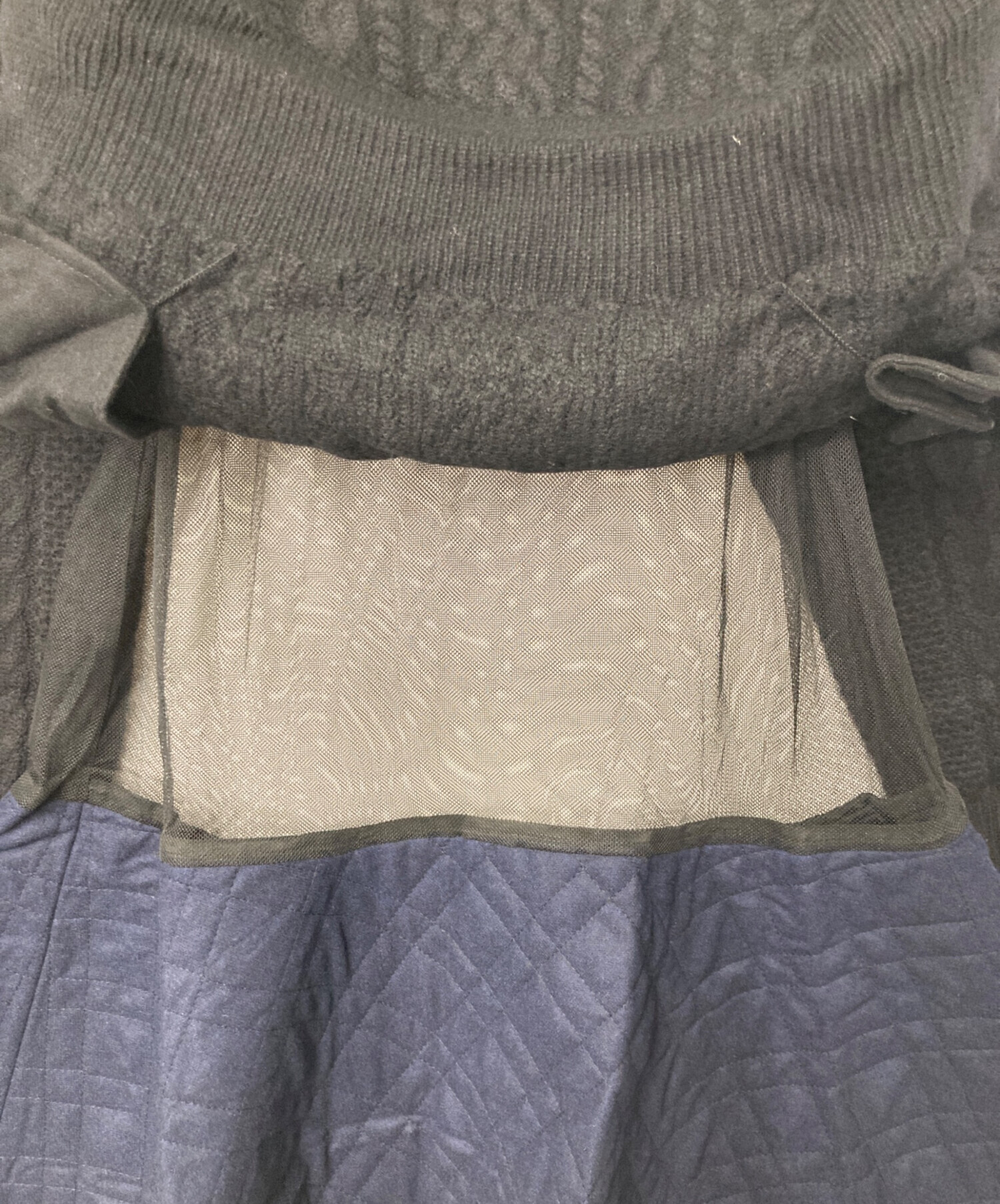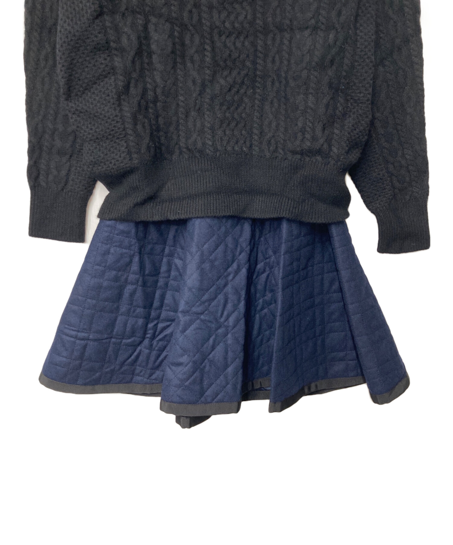 | アイテム名 | ドッキングニットワンピース 14AWLU820 Vネックニット ウール ケーブルニット ブラック ネイビー |