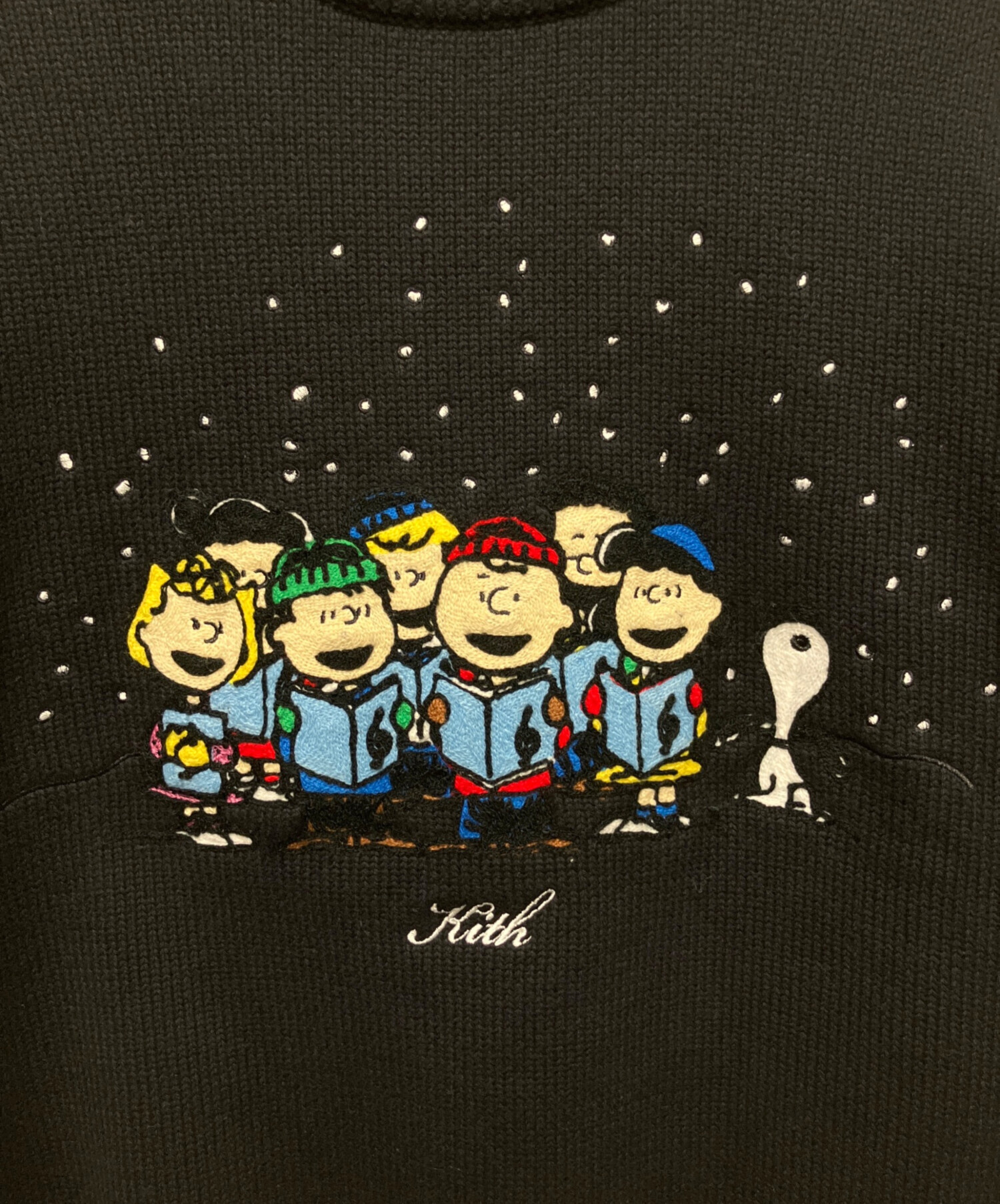 | スタッフコメント | KITHとPEANUTSのコラボレーションによるクリスマスキャロルセーターです。スヌーピーたちが描かれた遊び心あるデザインで、ホリデーシーズンに特に映える一着です。上質な素材感と程よいシルエットで、デイリーからギフトにもおすすめです。 |