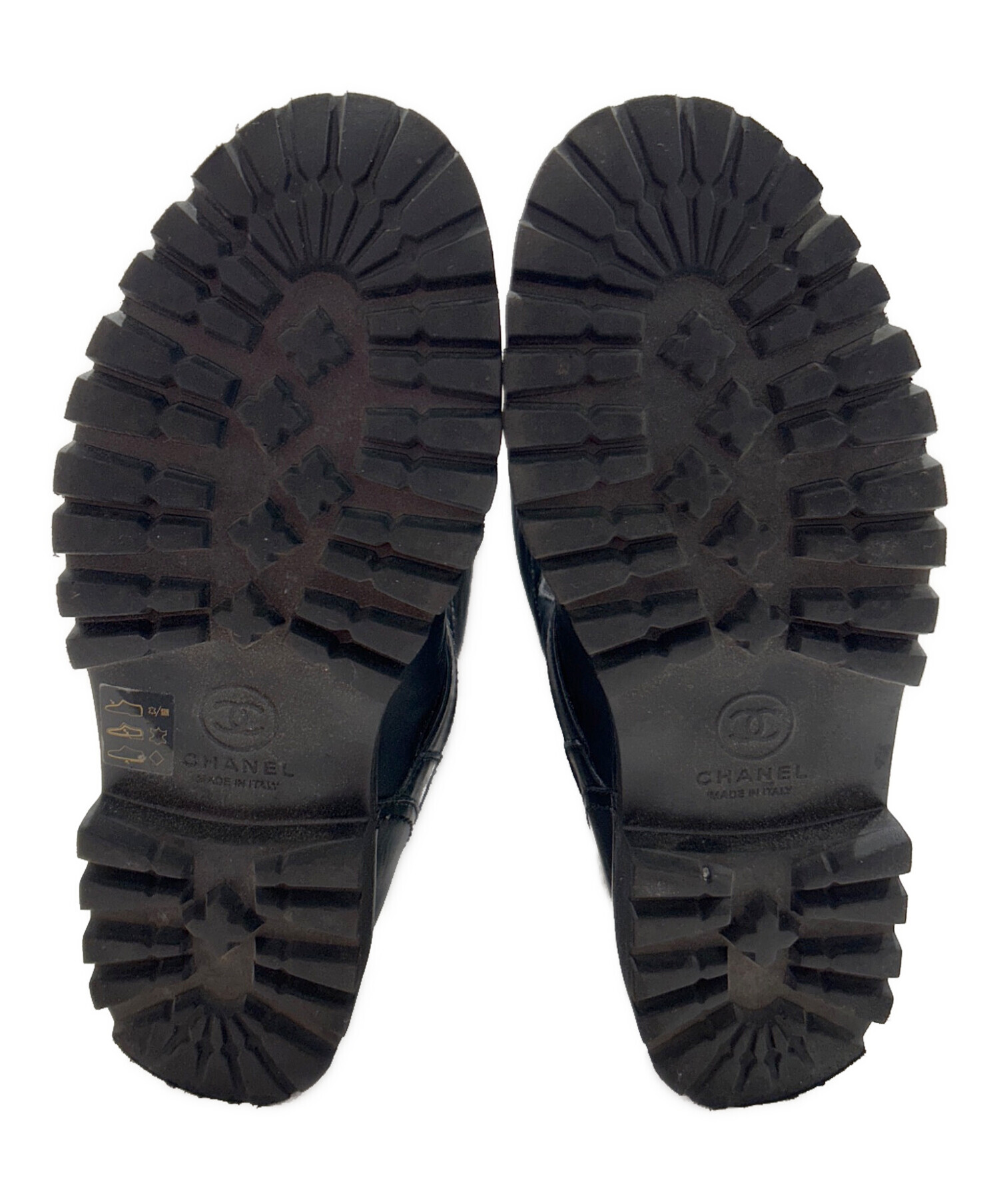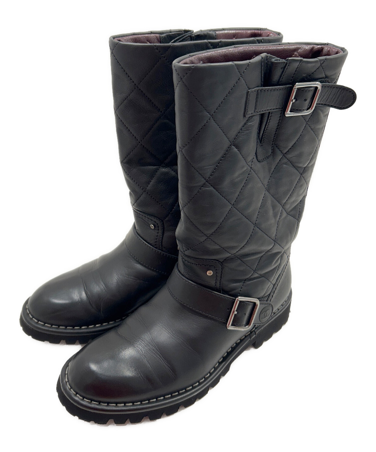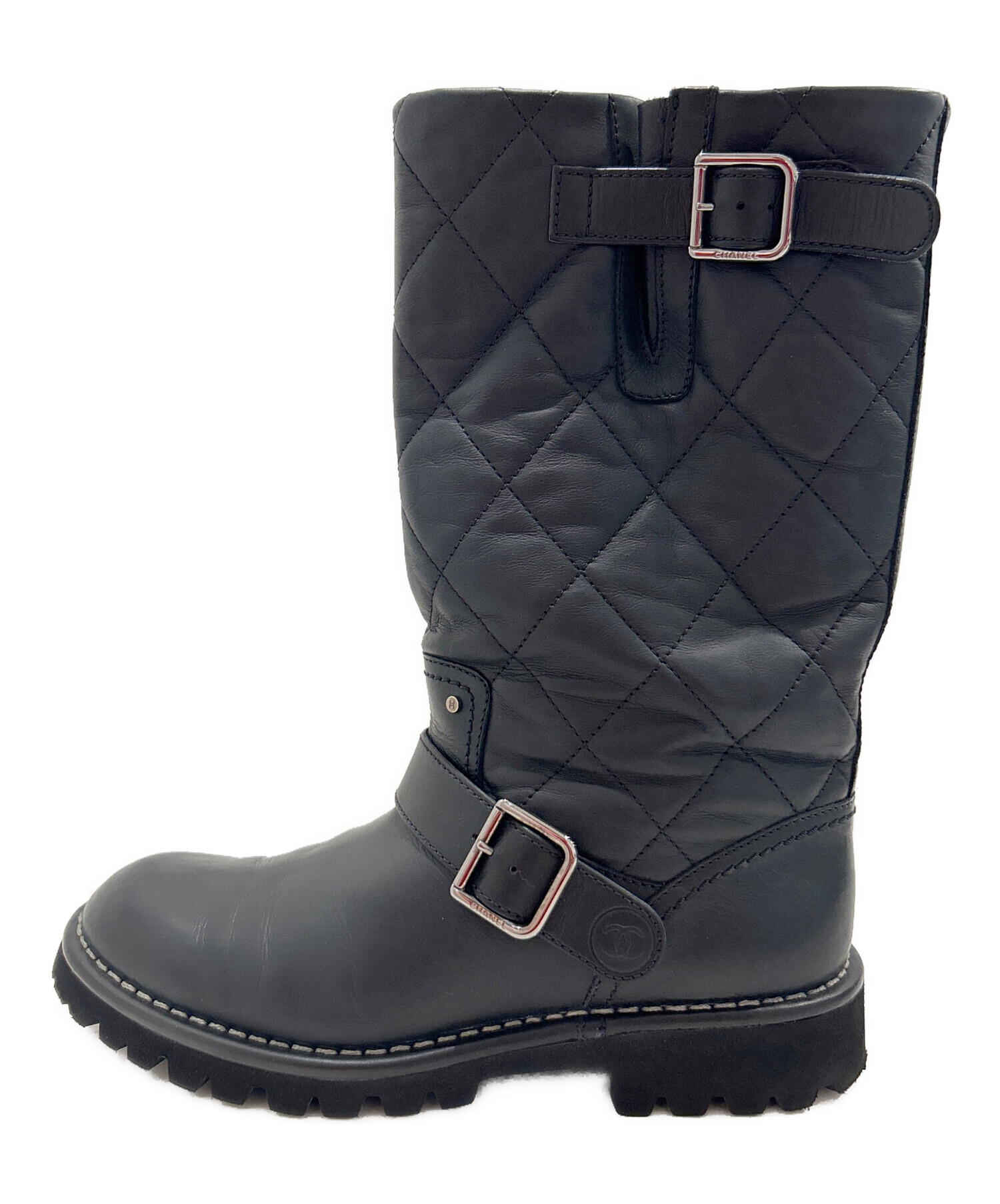 | スタッフコメント | 上品なブラックカラーとブランドアイコンのココマークが洗練されたCHANELのエンジニアブーツでございます。快適な履き心地と高級感あるデザインは幅広いシーンでお使いいただけるおすすめの一足でございます。 |