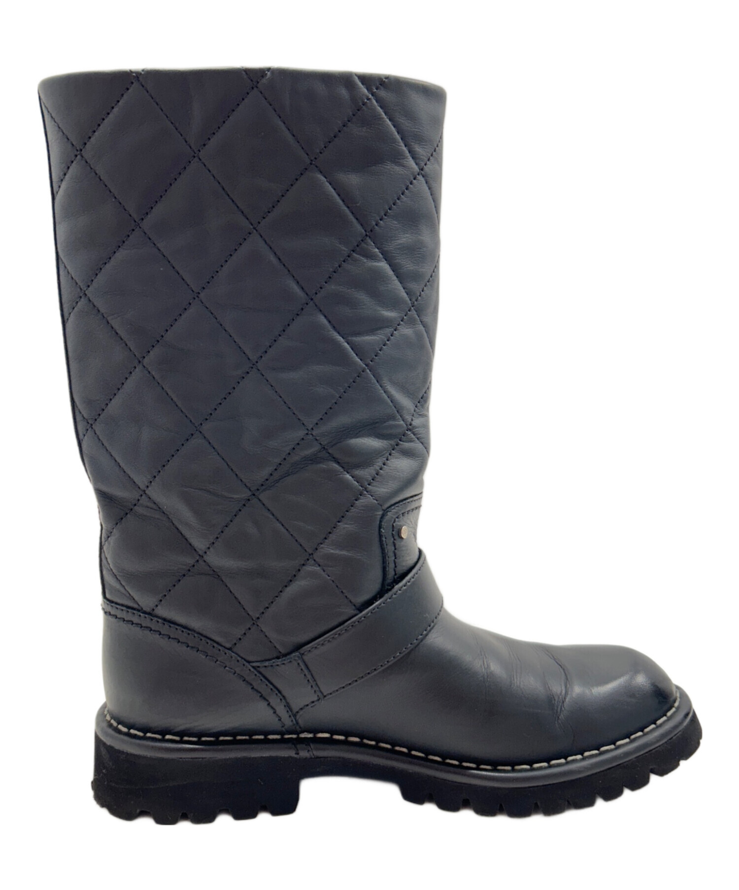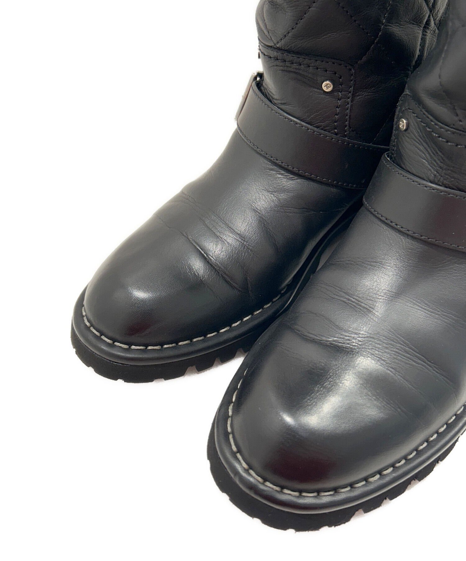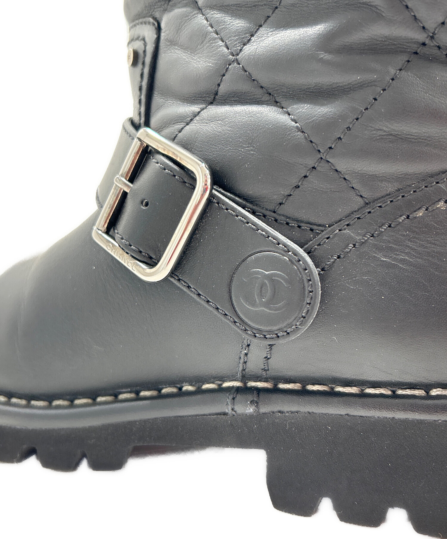 | スタッフコメント | 上品なブラックカラーとブランドアイコンのココマークが洗練されたCHANELのエンジニアブーツでございます。快適な履き心地と高級感あるデザインは幅広いシーンでお使いいただけるおすすめの一足でございます。 |