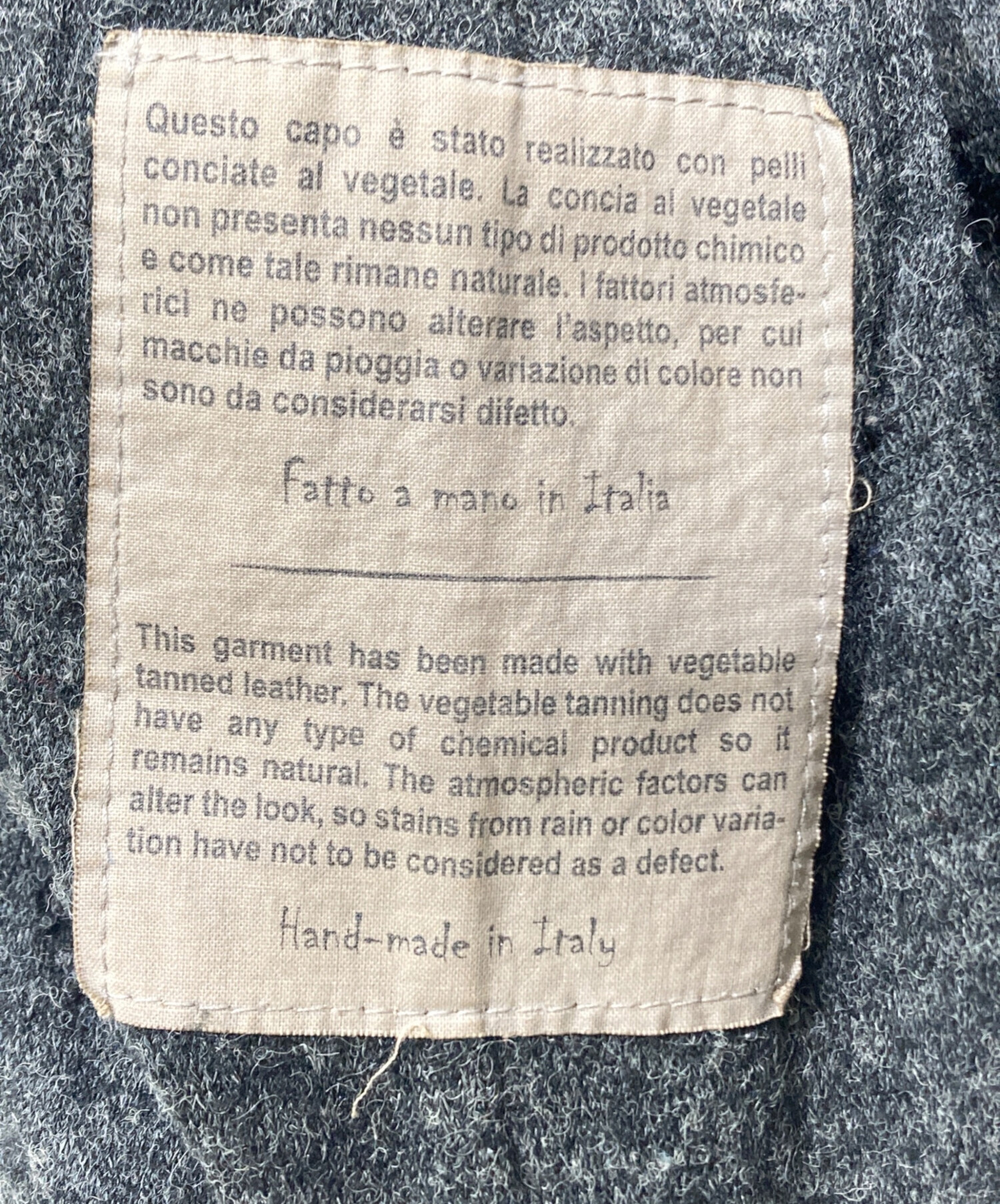| 素材 | 本体 羊革 裏地 アクリル 80% ナイロン 30% 袖裏地: 絹 93% ポリウレタン 7% |