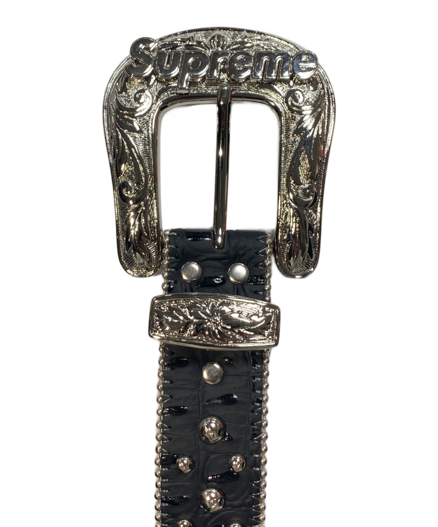 | スタッフコメント | SUPREMEとBB SIMONのコラボレーションによるスタッズレンジャーベルト。上質なレザーをベースに、細かく打ち込まれたスタッズが強い存在感を放ち、コーディネートの主役として活躍します。重厚感のあるバックルとタフな作りで、デニムやカーゴパンツ、ストリートスタイルとの相性も抜群。ウエスト周りにアクセントを加えたい方におすすめの一本です。 |