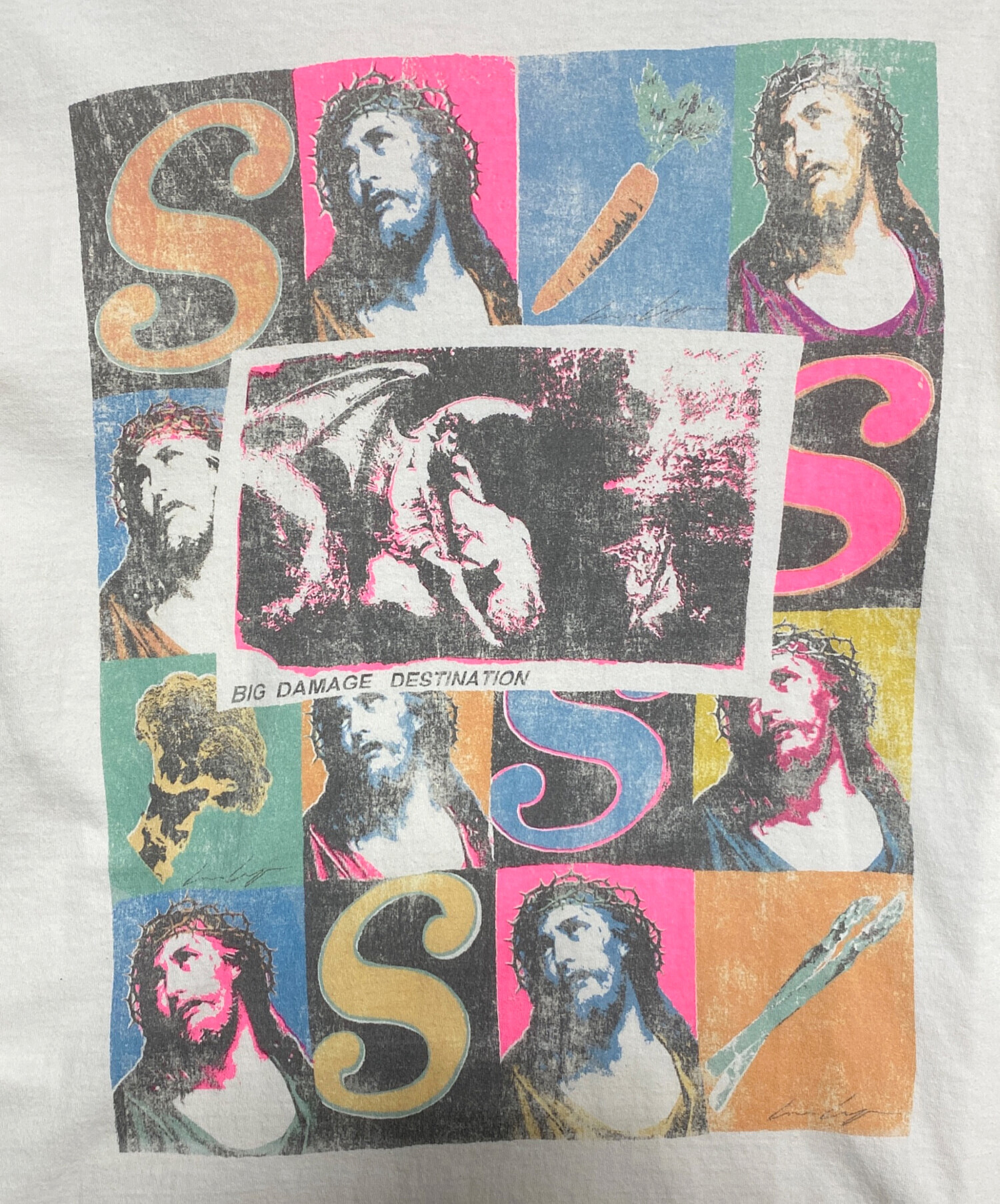 | スタッフコメント | ブランドらしい退廃的なグラフィックとリアルなヴィンテージ加工が特徴の一着です。コットン素材のボディにウォッシュやダメージ加工を施し、着込まれたような風合いを表現しています。 |