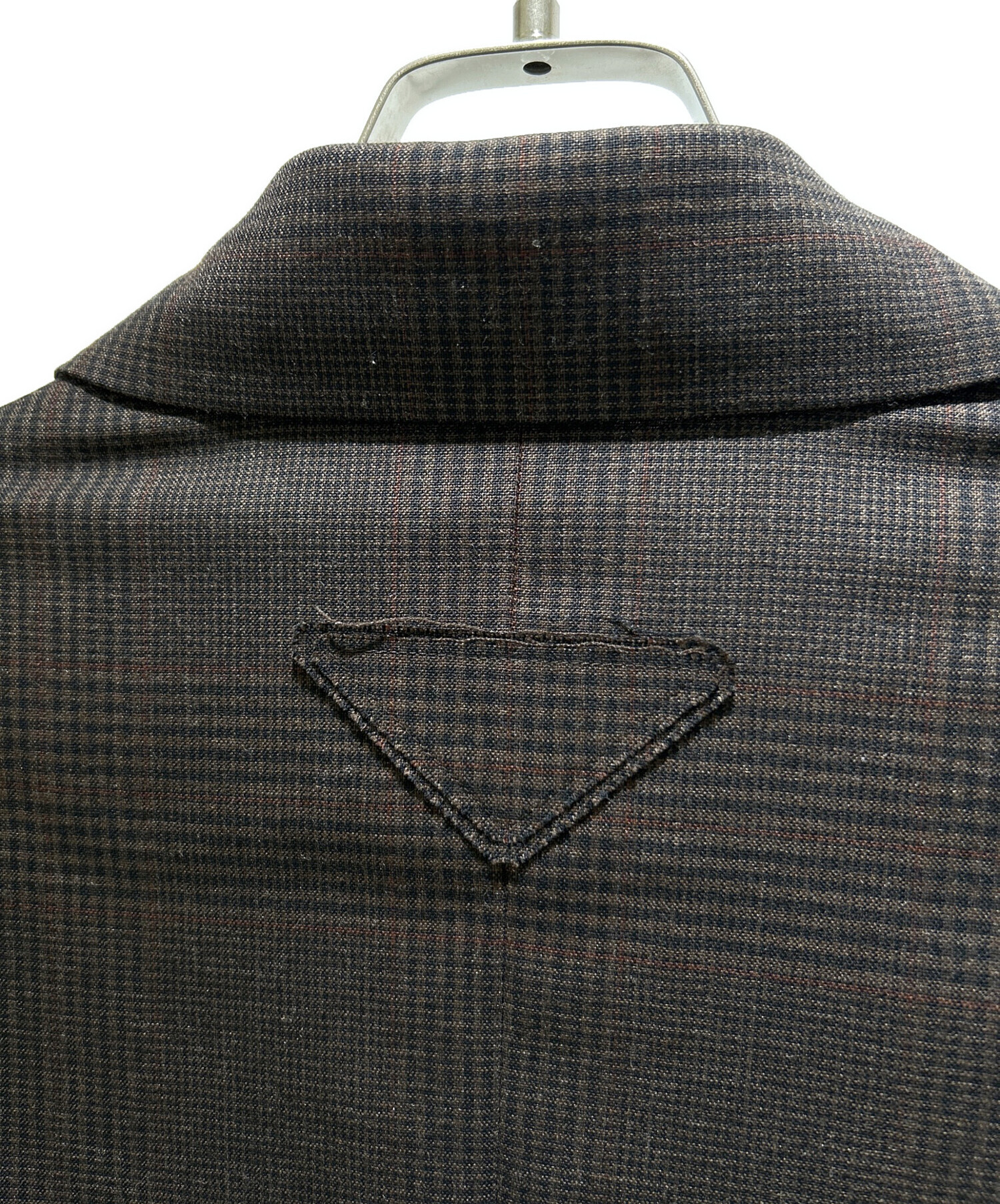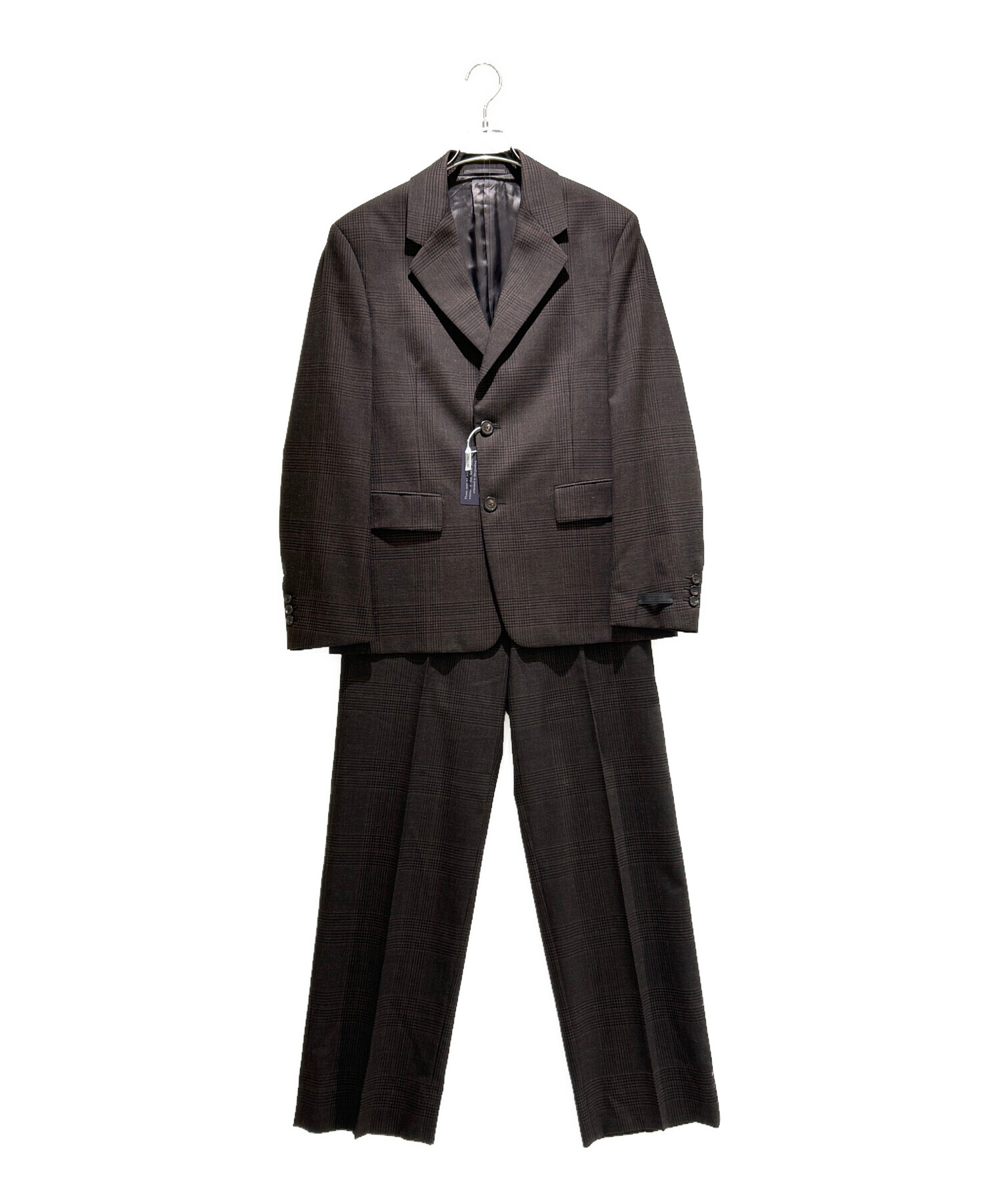 | スタッフコメント | ダークブラウンが基調になったグレンチェック柄のPRADAのセットアップスーツでございます。無駄を省いたシャープなデザインと美しいシルエットが、プラダらしい都会的な印象を演出いたします。ジャケットとパンツのバランスも良く、ビジネスシーンはもちろん、フォーマルな場やモードなスタイリングにも対応可能でございます。 |