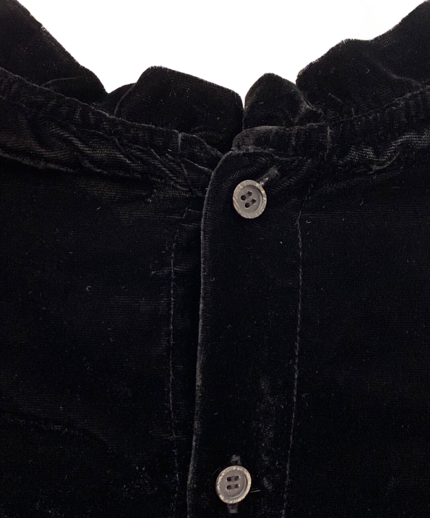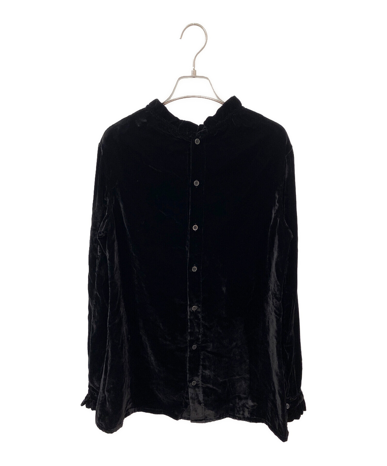 | スタッフコメント | 深みのあるブラックベルベットが上品な艶を放つブラウスでございます。柔らかく滑らかな素材感が美しいドレープを生み、シンプルながらも存在感のある1枚です。クラシックでモードな雰囲気を併せ持ち、デニムでカジュアルダウンしても、きれいめなボトムと合わせてオケージョンシーンにも活躍します。スタイリングに奥行きを与えてくれる大人のためのブラウスです。 |