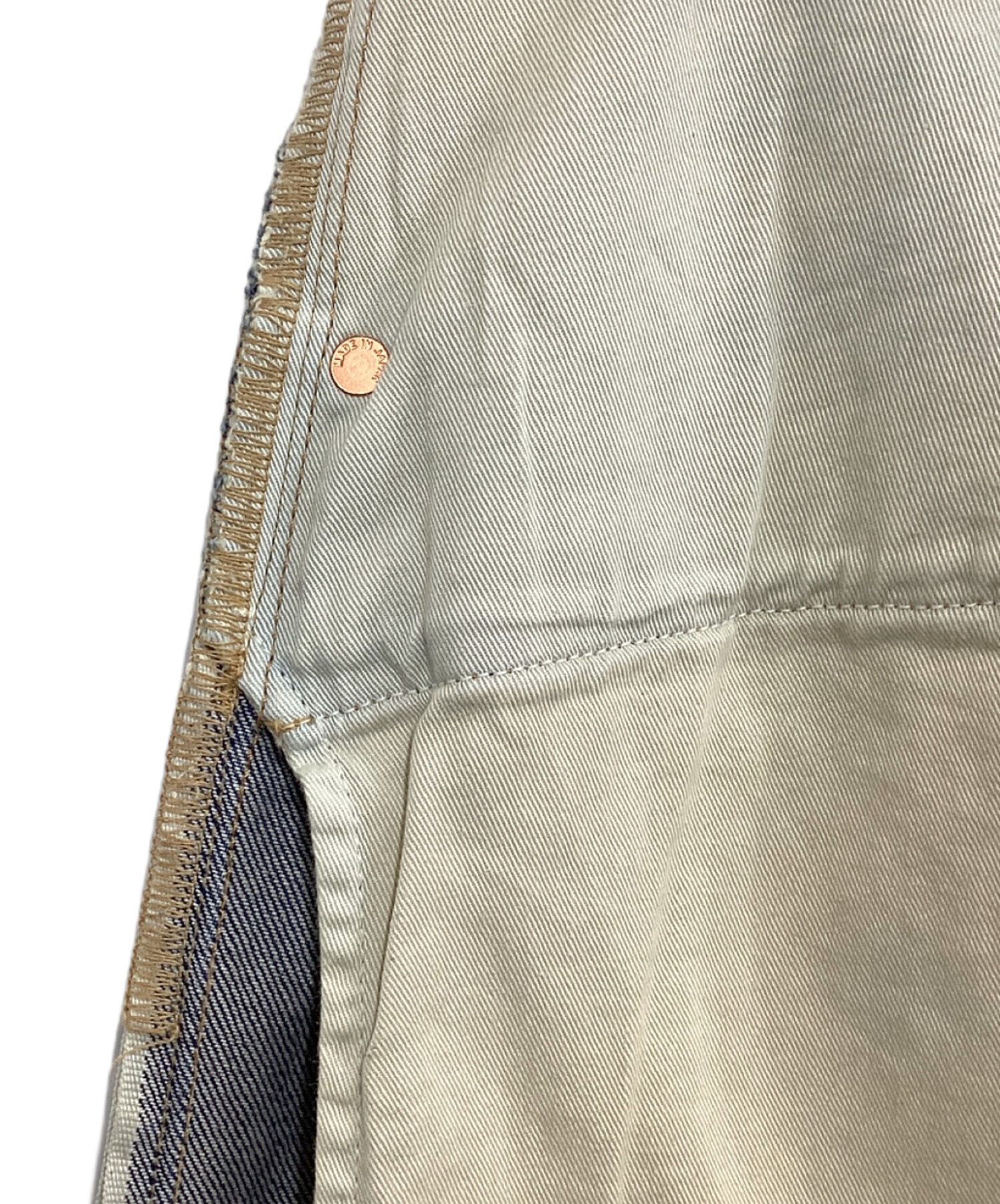 ファスナー、ボタンフライ部分の下部の端から端を2倍した長さ