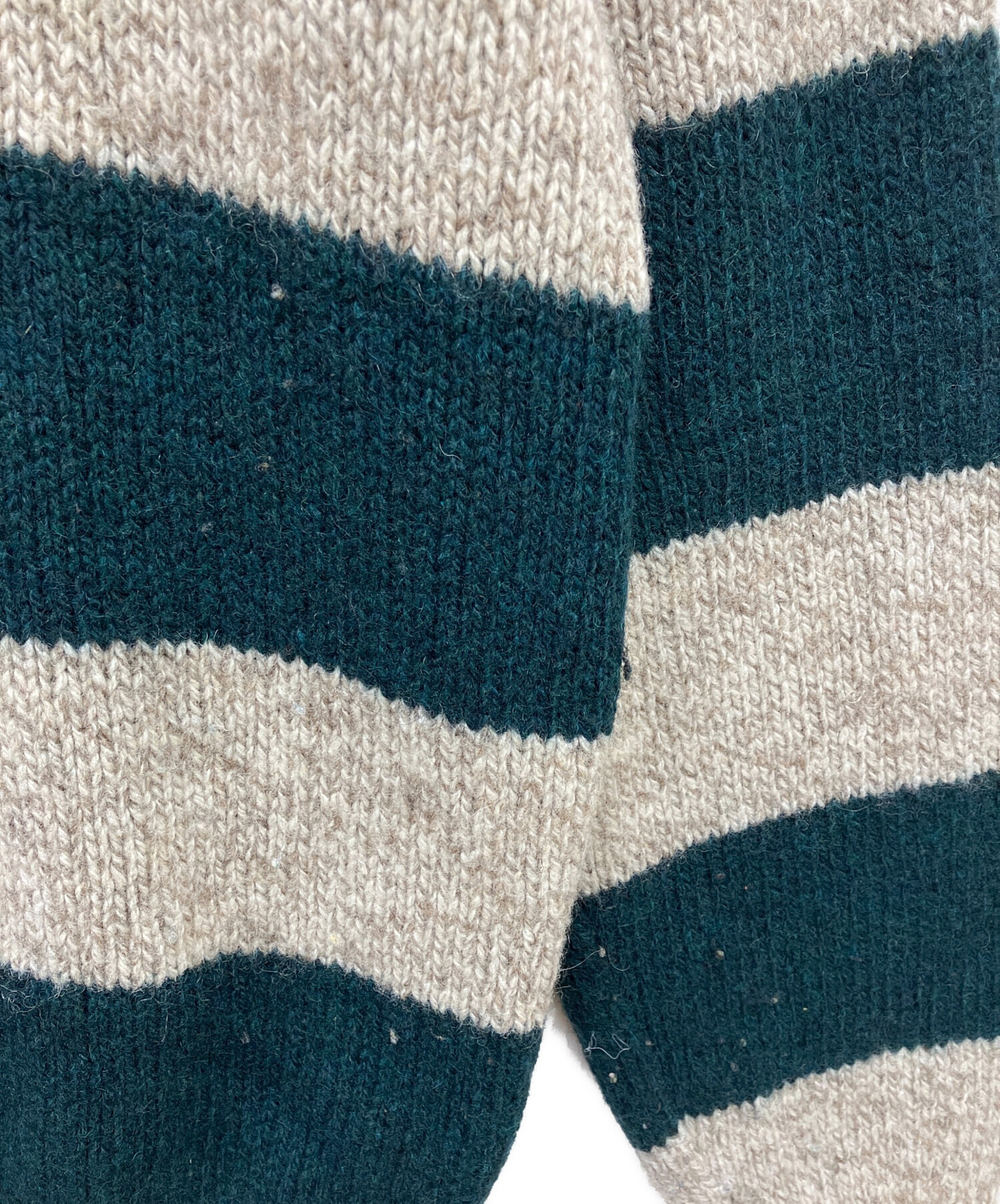 • L.L.Bean(エルエルビーン)L.L.Bean (エルエルビーン) 70sウールボーダーニット ベージュ×グリーン サイズ:Mの古着・服飾アイテム 毛玉有
