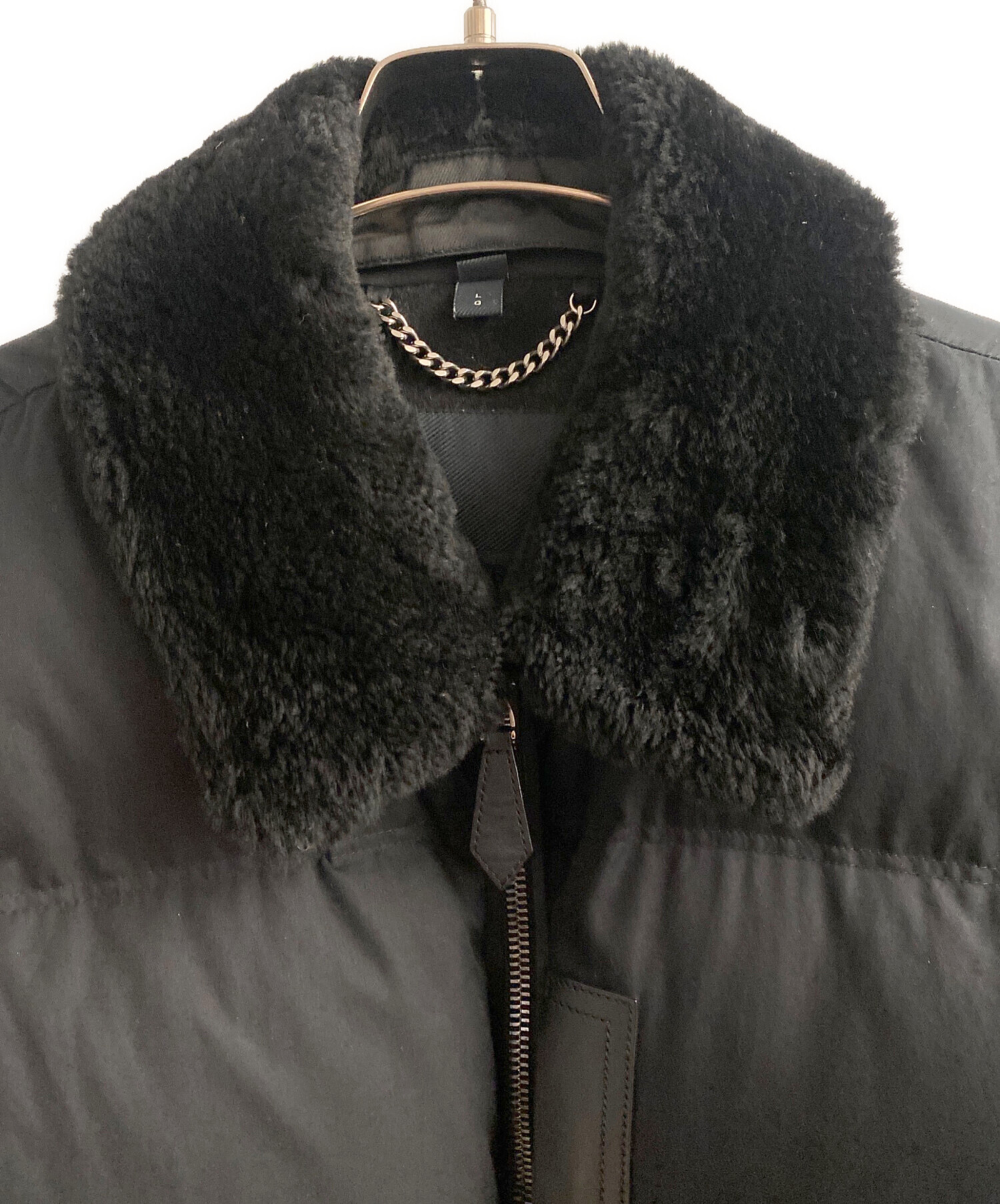 | 素材 | 袖:コットン100% 裏地上部:羊毛90%・カシミア10% 裏地下部:キュプラ60%・綿40% 袖裏地:キュプラ60%・綿40% ダウン含有量グレーグースダウン90%グレーグースフェザー10% 詰め物:ポリエステル繊維100% 襟と裾:シープスキンエード100% 袖口:羊毛89%・ナイロン9%・スパンデックス2% レザートリム:牛革100% 取り外し可能なシープスキンカラー:シープスキン100% 取り外し可能な襟裏地:キュプラ60%・コットン40% |