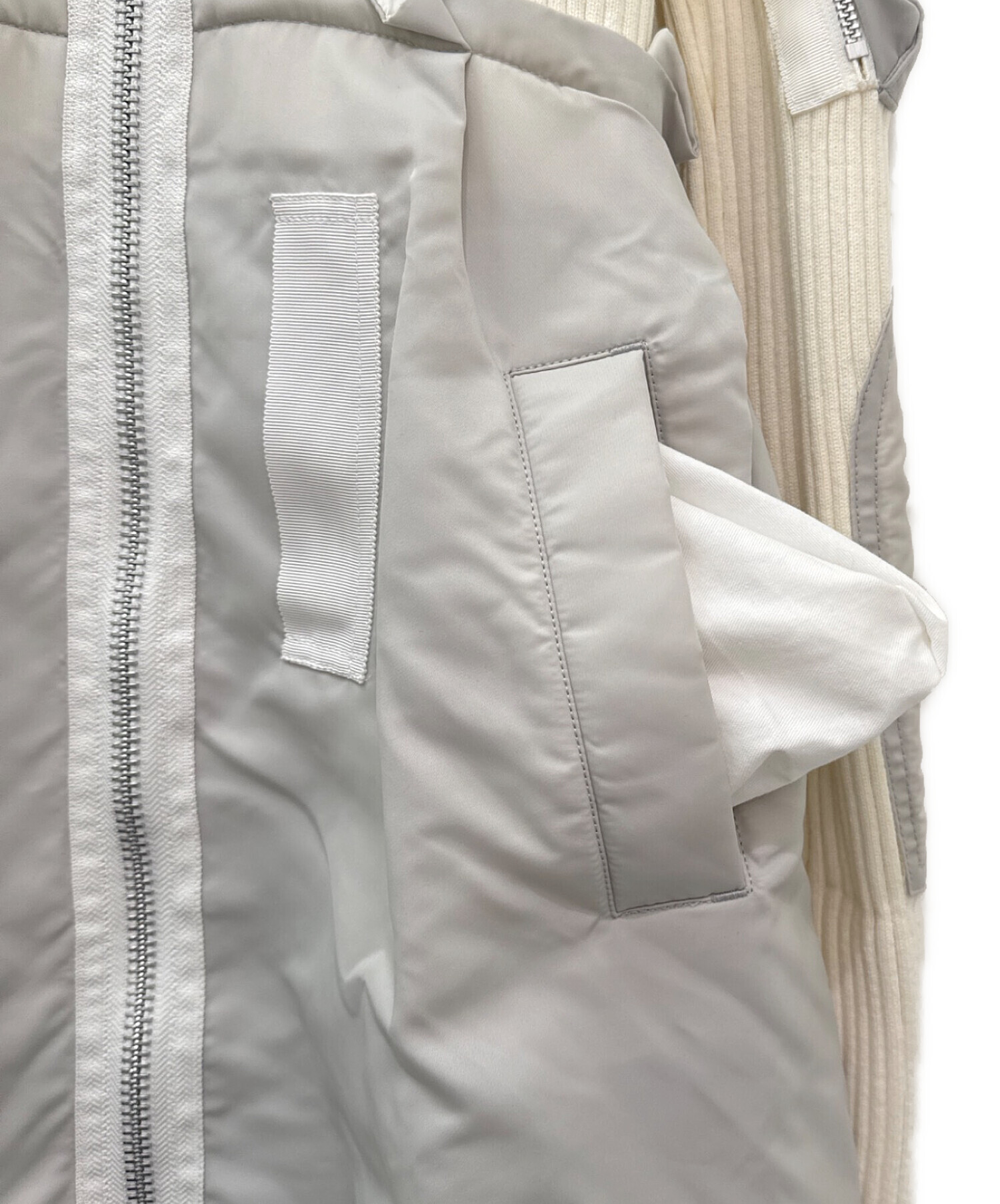 | スタッフコメント | 異素材ドッキングが際立つワンピースでございます。柔らかなニット素材と、ハリのあるナイロンツイルを組み合わせた立体的なデザインが特徴です。グレー×ホワイトの配色がクリーンで洗練された印象を与え、動くたびに表情の変わるシルエットを演出します。1枚で存在感がありながらもスタイリングしやすく、デイリーからモードなシーンまで幅広く活躍するアイテムです。 |