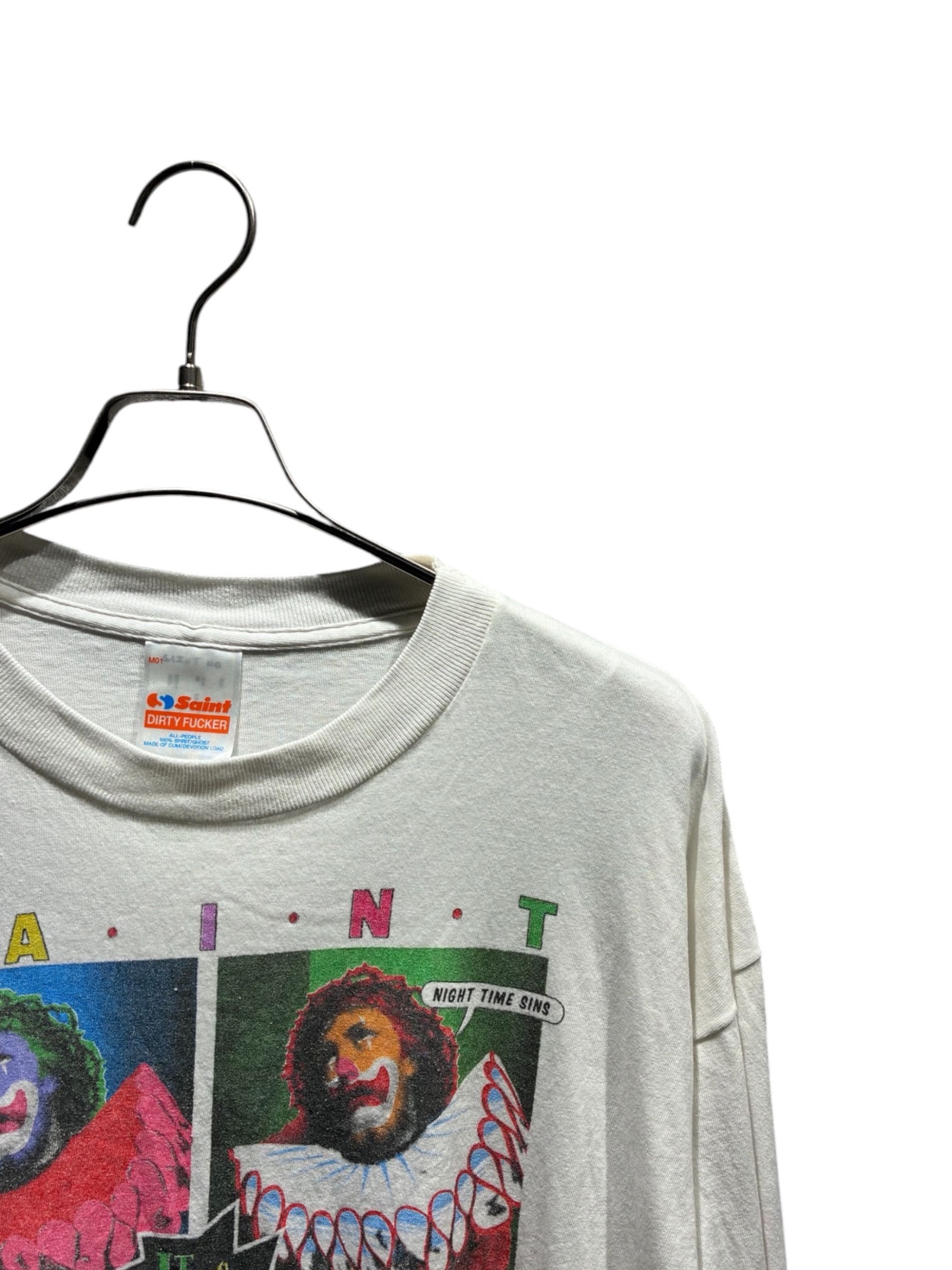 | スタッフコメント | SAINT MICHAEL(セントマイケル)のロングスリーブTシャツです。ブランドらしいヴィンテージ感のある風合いと存在感のあるプリントが魅力の一着です。程よくゆとりのあるシルエットで着用しやすく、デニムやカーゴパンツとも相性が良く、幅広いスタイリングで活躍します。 |