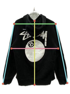 • stussy(ステューシー)stussy (ステューシー) 8 BALL HOODIE ブラック サイズ:Mの古着・服飾アイテム 袖口ヨゴレ有り