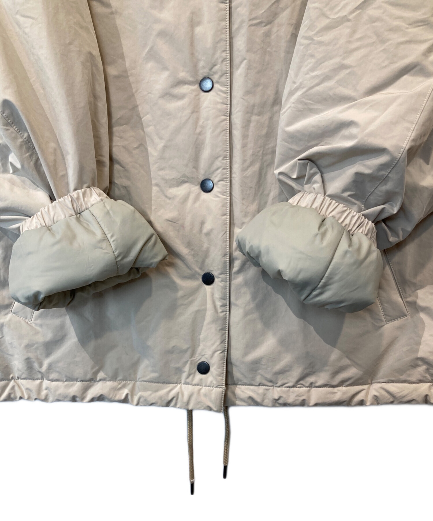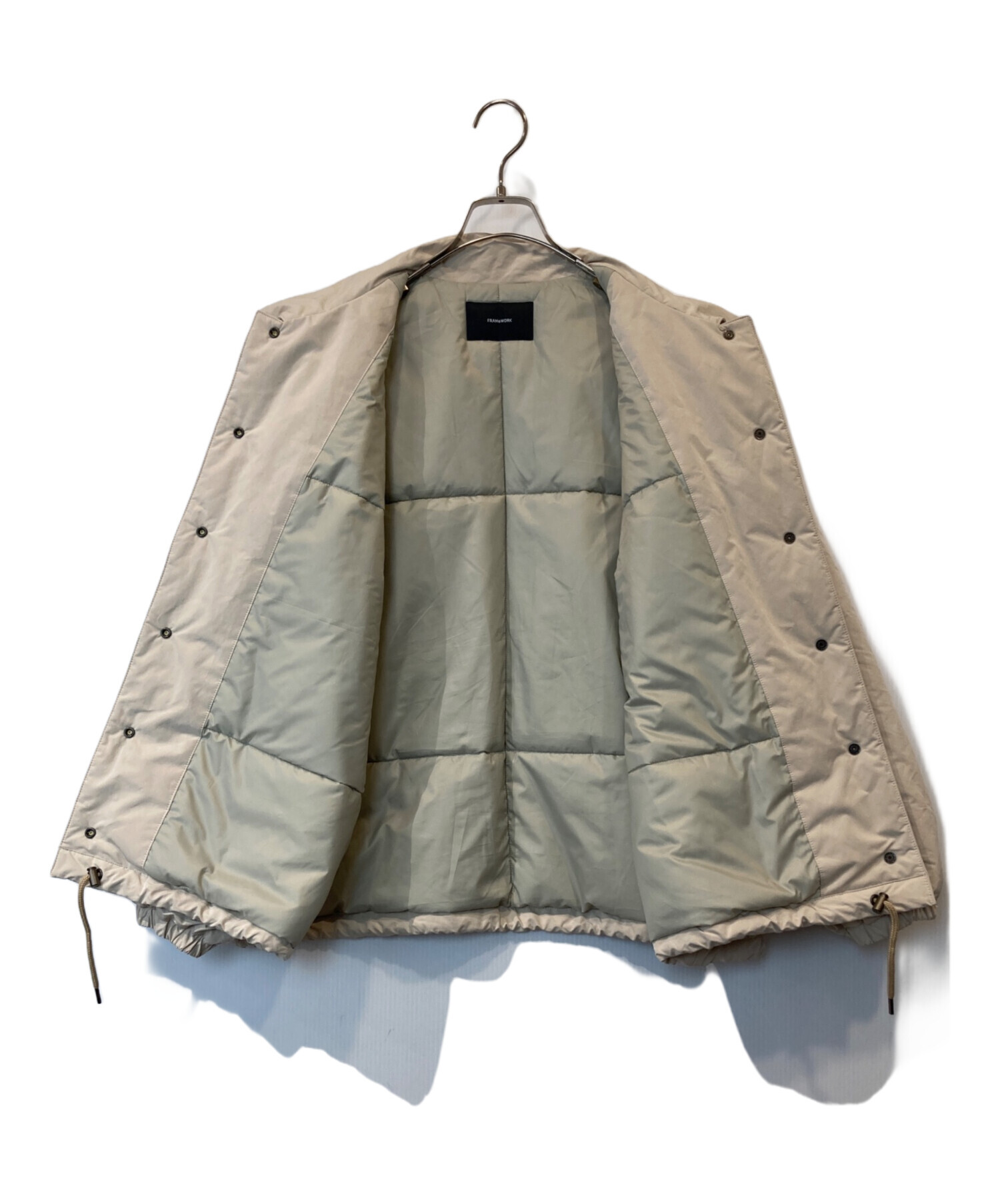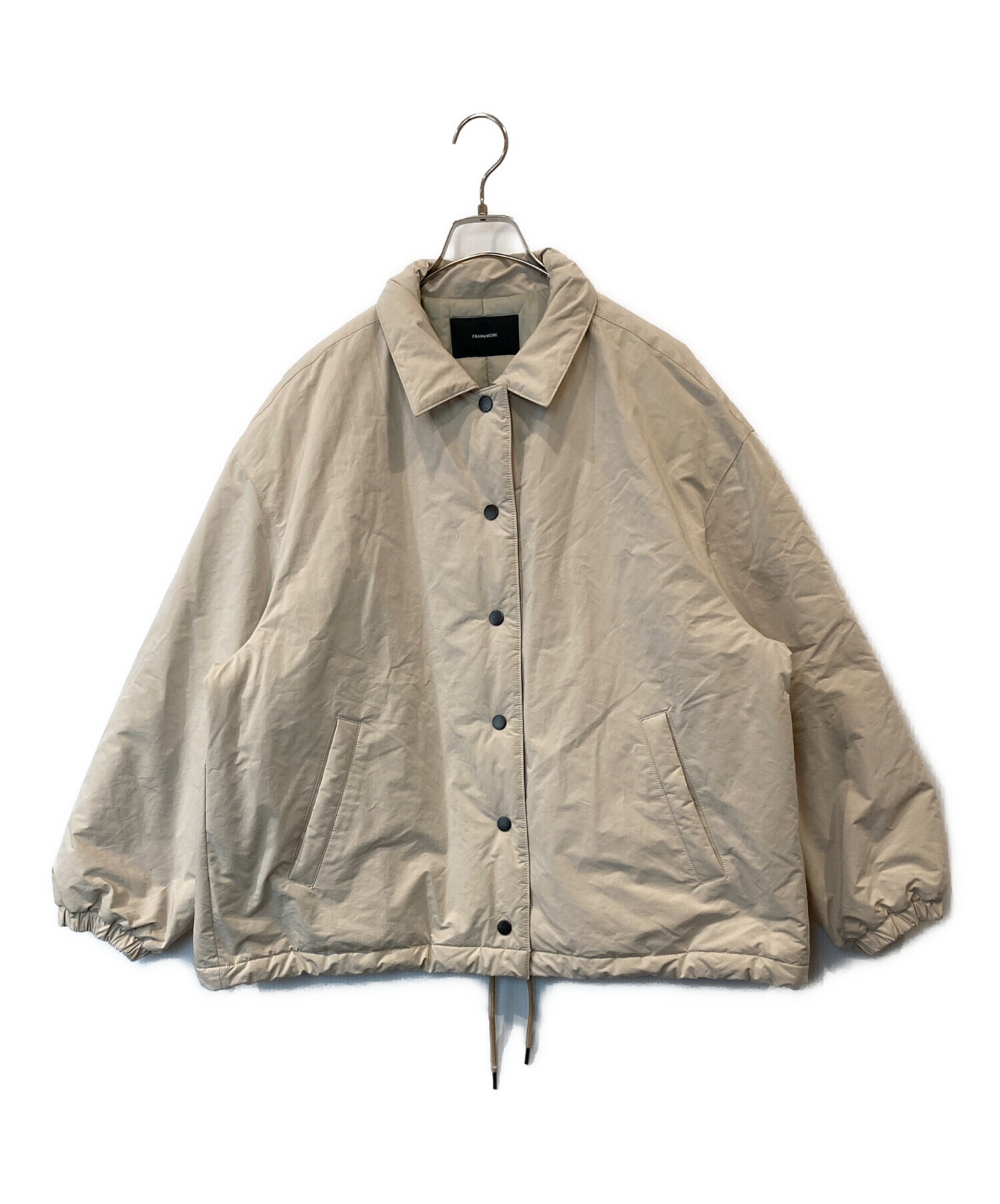 | スタッフコメント | 機能性とデザイン性を兼ね備えたレディースアウター。撥水・防風仕様で急な雨や風にも対応し、季節の変わり目に活躍します。アイボリーカラーが上品で、カジュアルからきれいめまで幅広いコーディネートにマッチ。SIZE38で程よくゆとりのあるシルエットも魅力です。各所にヨゴレはありますが、普段使いには問題なく、FRAMeWORKの機能性コートをお探しの方におすすめです。 |